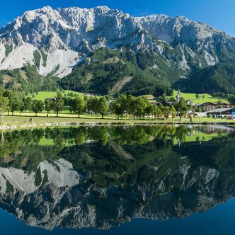 The Dachsteinstraße was built in 1961 to connect Ramsau with the Alpine pastures at the foot of Styria’s highest mountain - the Dachstein. The mountain road winds its way along 6.3 km up to an altitude of 1.700 m where you will find the bottom station of the Dachstein Gondola. From there, you can experience breath-taking scenery with stunning views across the Schladminger Tauern, the Bischofsmütze, the Rötelstein, and the impressive southern walls of the Dachstein massif.