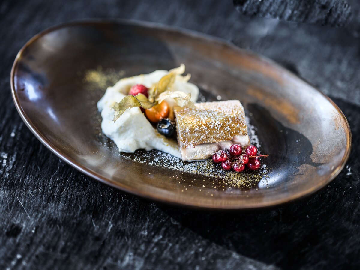In the evening, we spoil you with a five-course menu made from regional ingredients and inspired by international influences. Our friendly kitchen and service team will create a harmonious atmosphere so that you can relax at the end of your day. Our offer is complemented by a well-stocked wine list with fine national and international wines to perfectly round off your meal.