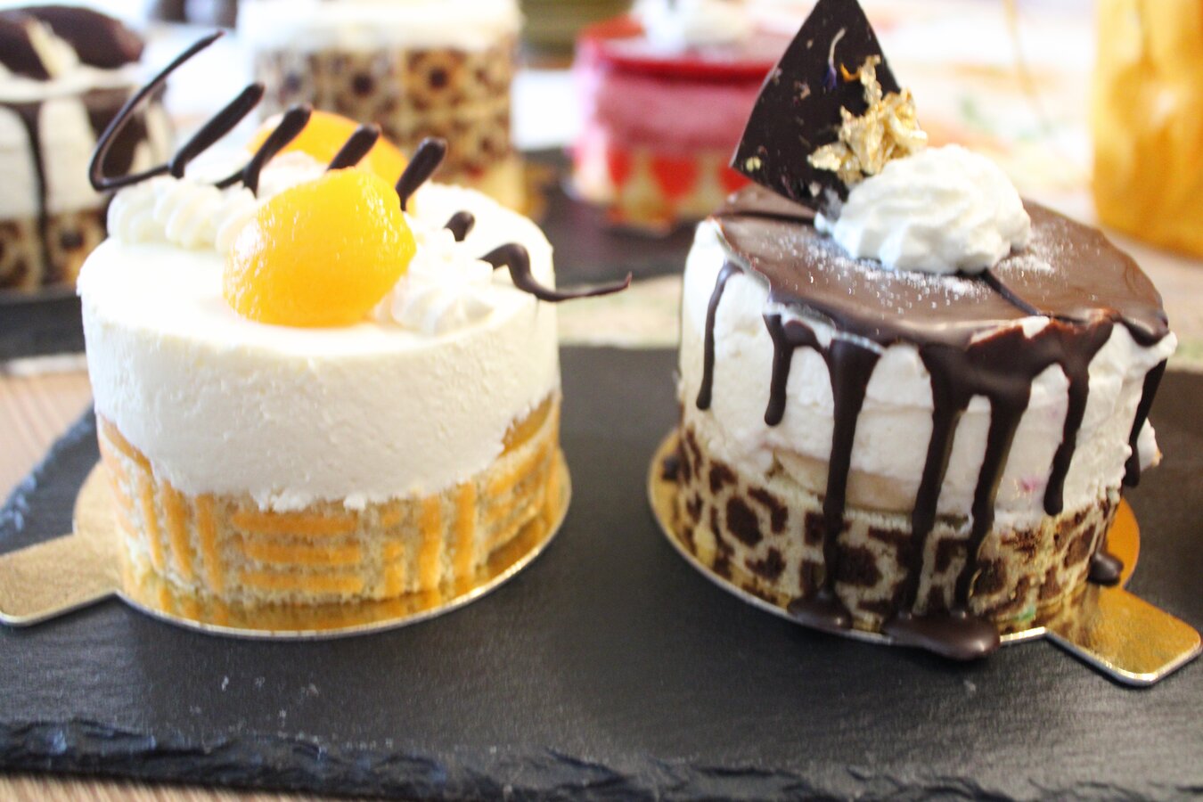 You can pick up some treats or just enjoy them here with us in our bakery.
