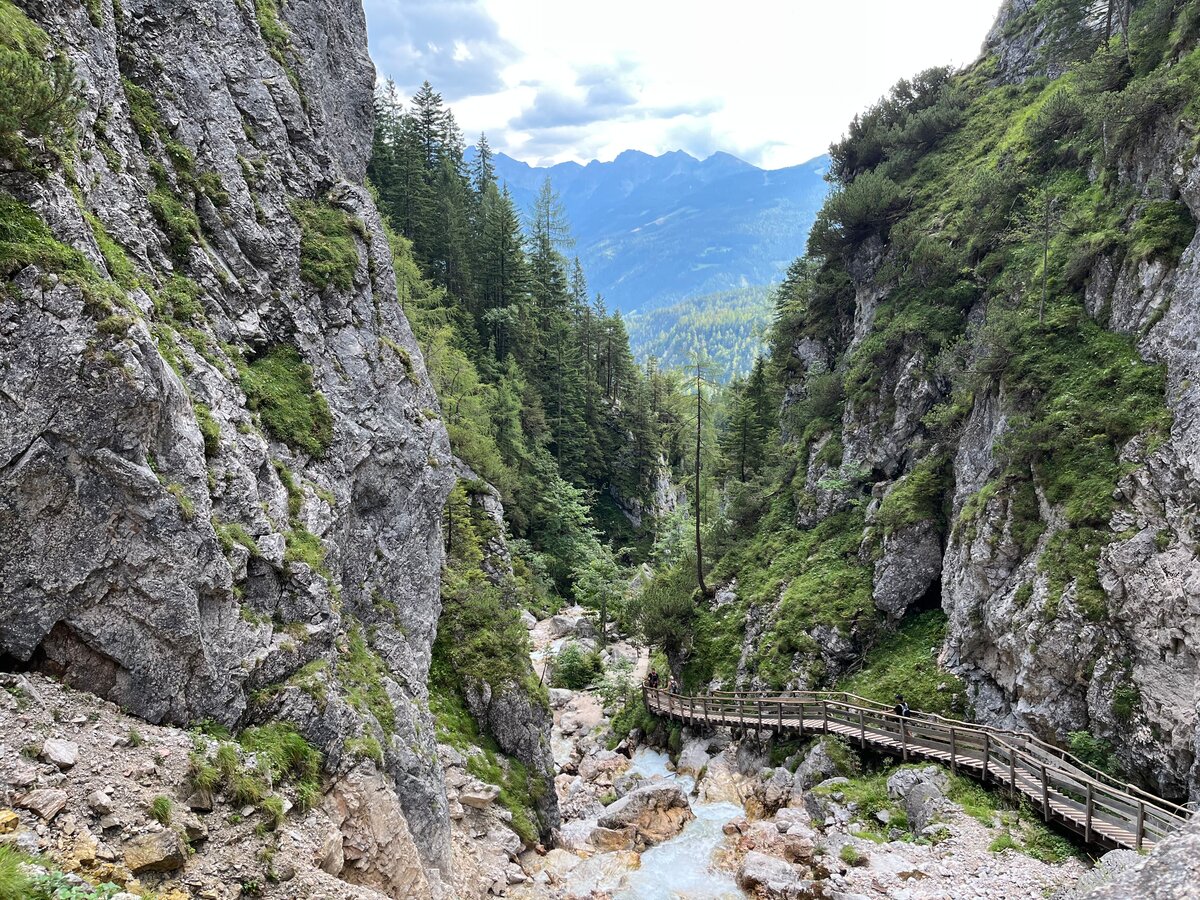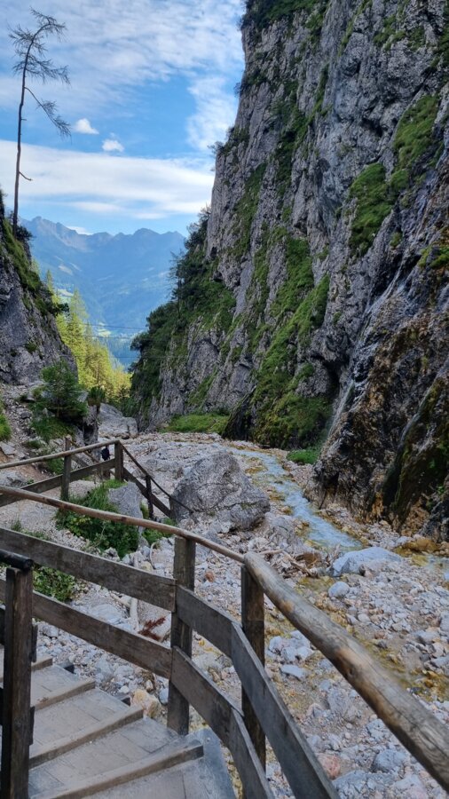 Eine wunderschöne Klamm die zu einer herrlichen Alm führt. Es befinden sich mehrere Klettersteige dort, bei denen man die Kletterkünste der Kletterer beobachten kann. Ein Besuch lohnt sich auf jeden Fall.