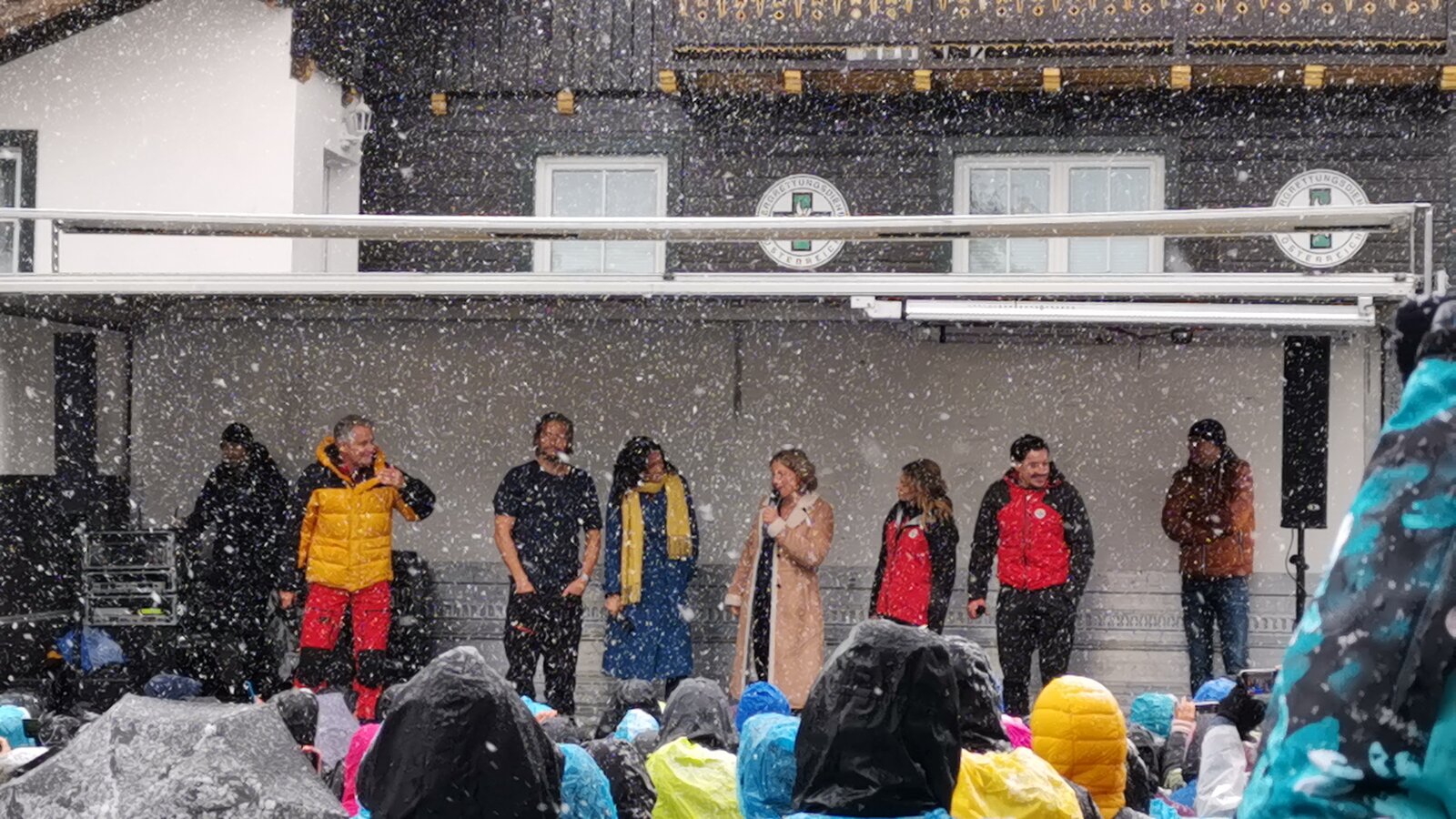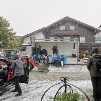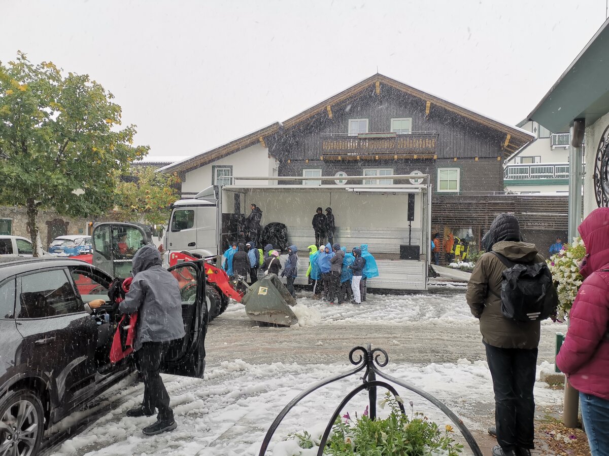 Toll vor der echten Filmkulisse zu stehen, auch wenn einige Autos vor der Bergretterzentrale geparkt haben. Auch wenn das Wetter an diesem Tag etwas regnerisch war, haben wir einen fantastischen Umzug erleben dürfen.