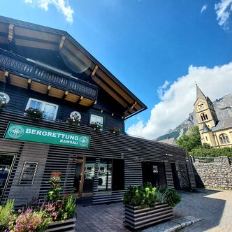 The interior of the mountain rescue headquarters can be visited as part of the guided hike. You can also visit the outside of the filming location without a guide. Please note: Do not park directly in front of the building. Free parking is available at the church and at the Dachstein Event Center.