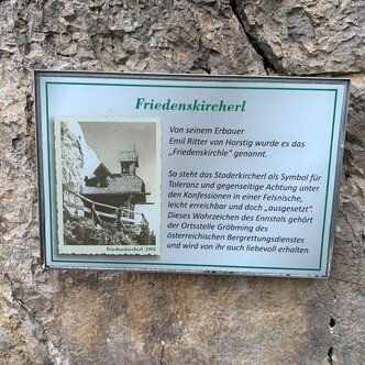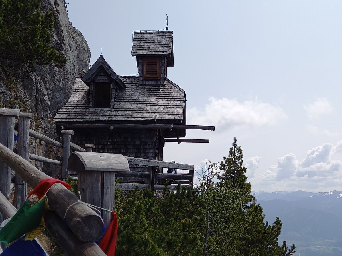 Das Friedenskirchel am Stoderzinken ist sehr schön gelegen auf einem Bergvorspung. Von dort kann man die Gämse beobachten und ein Glöckchen läuten. Wenn man Glück hat trifft man die Bergretter bei den Dreharbeiten an.