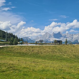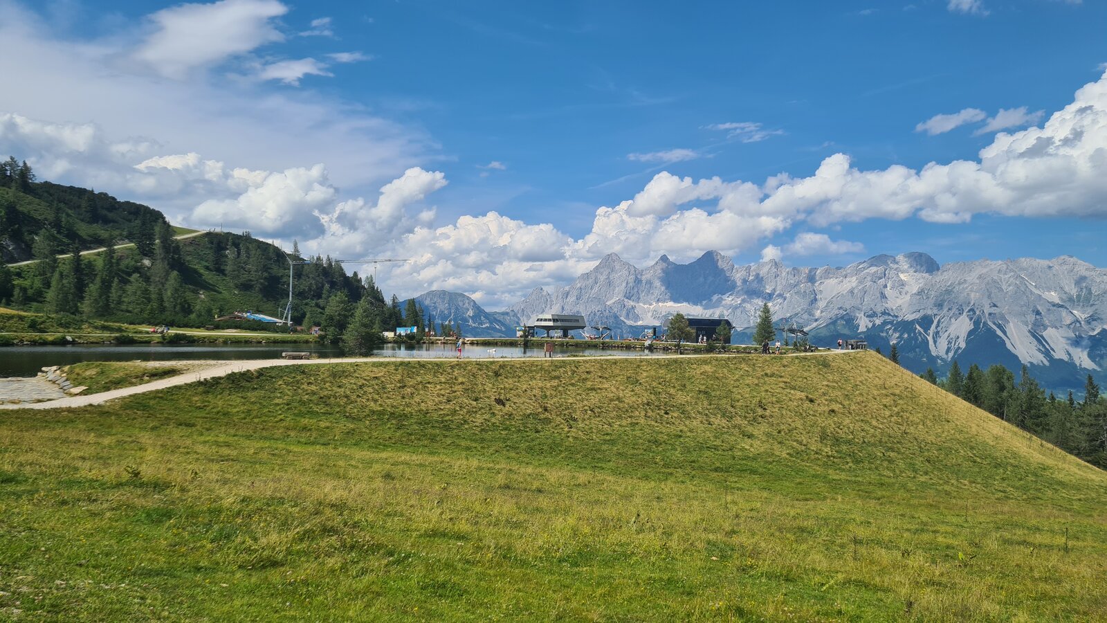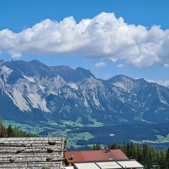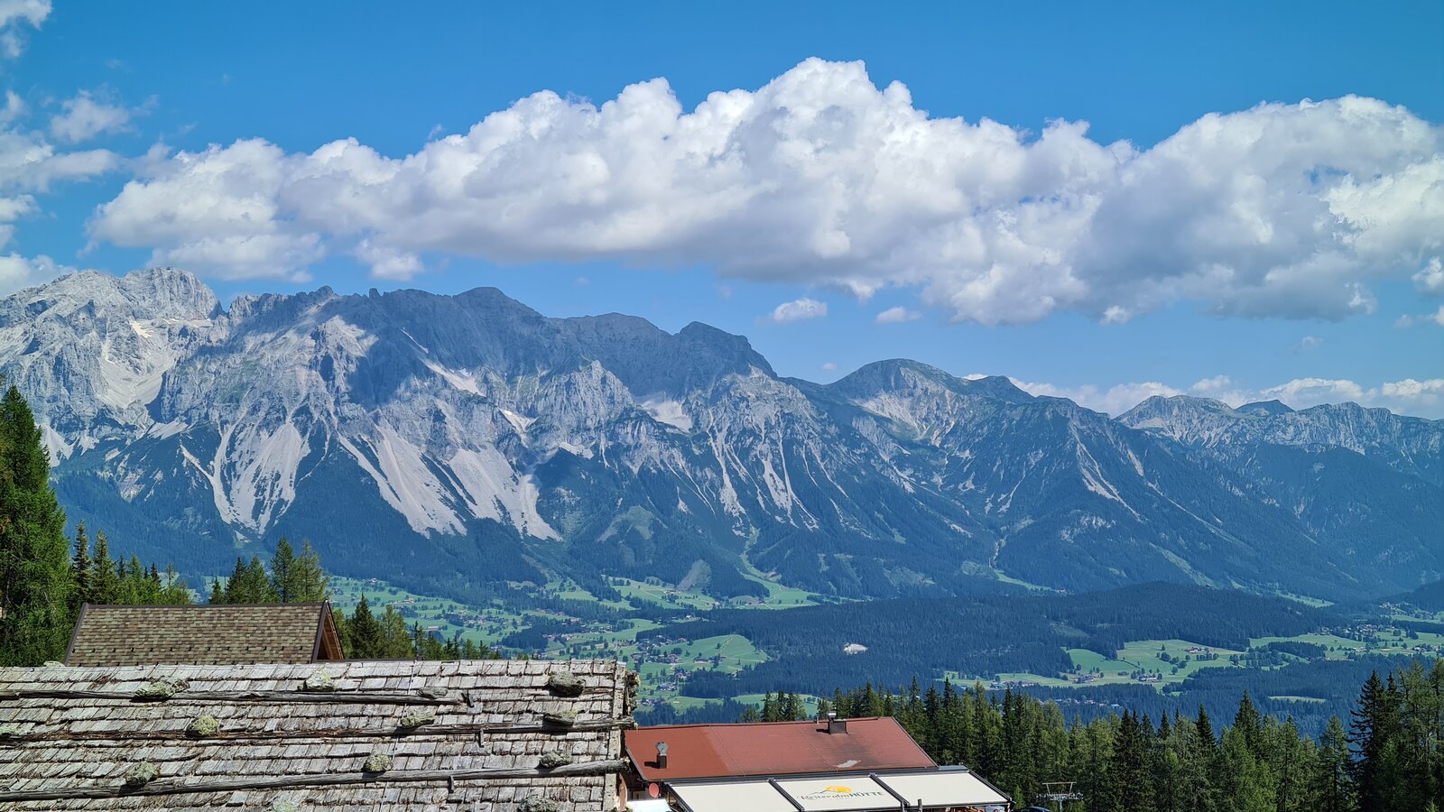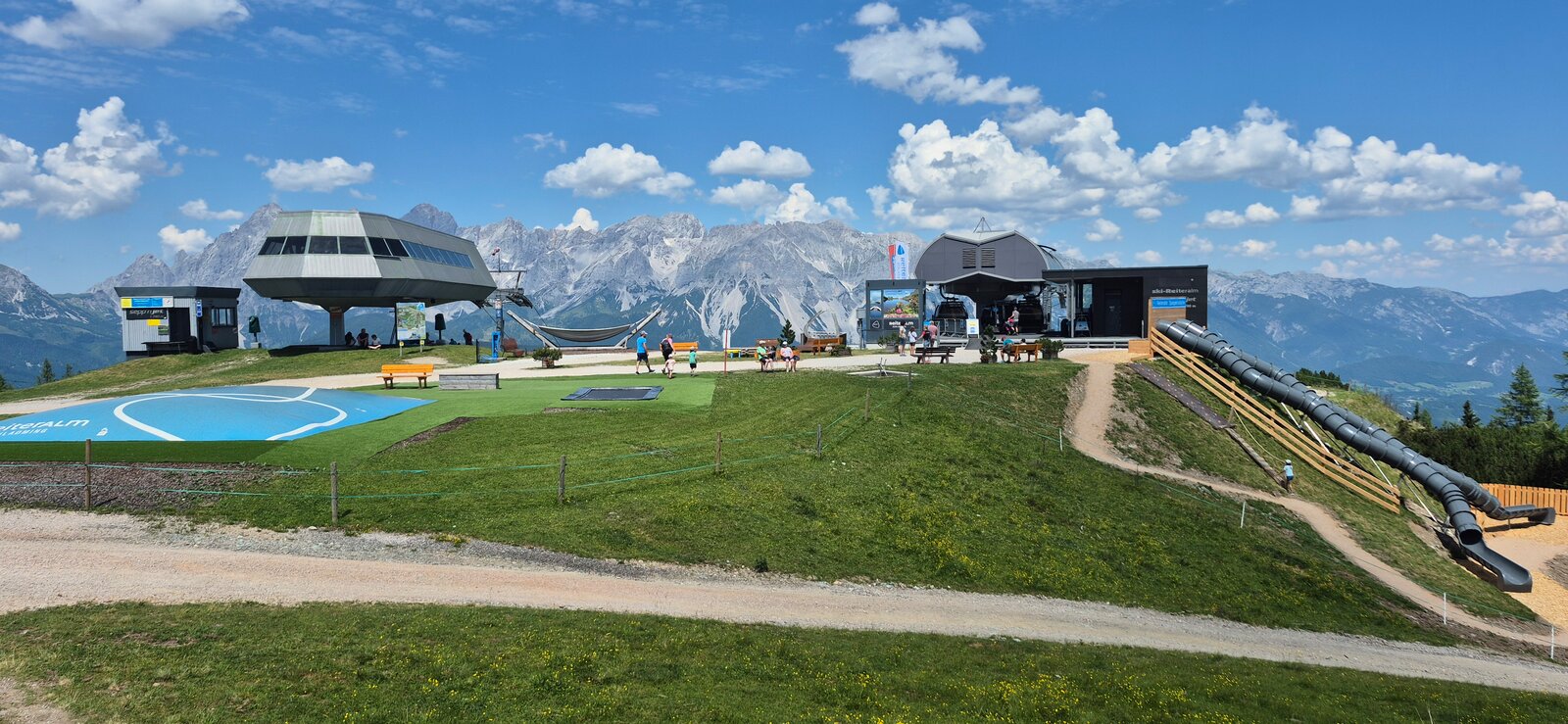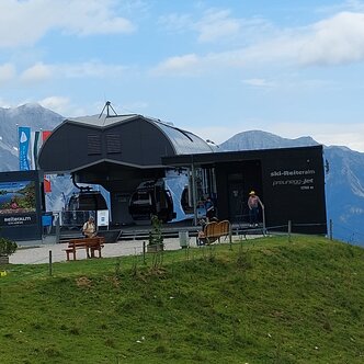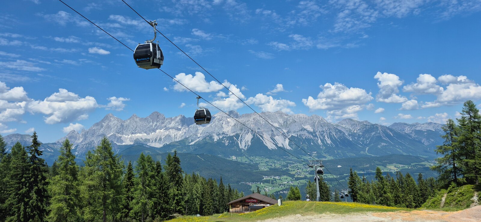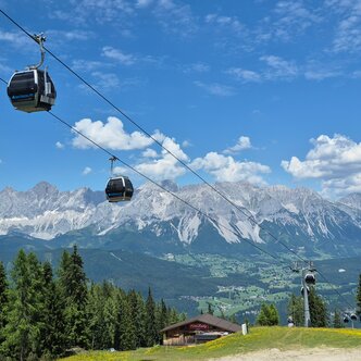 Mit der Gondelbahn "Preunegg Jet" geht es circa 10 Minuten mit der Gondelbahn den Berg hinauf. Von hier hat man einen tollen Blick auf das Dachsteingebirge und ins Ennstal. Viele Wanderungen kann man von der Bergstation machen.