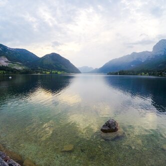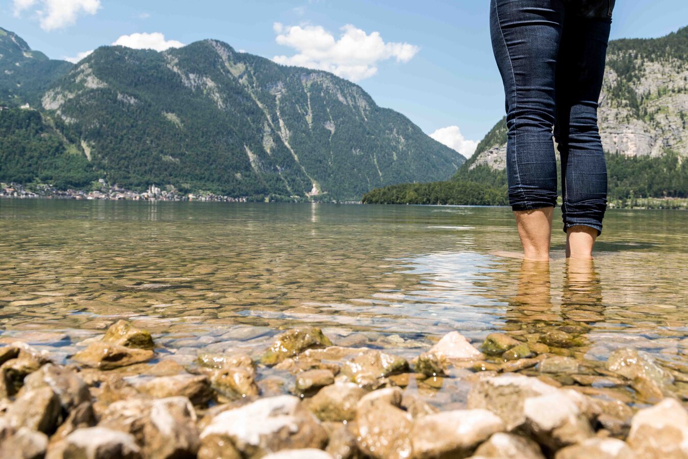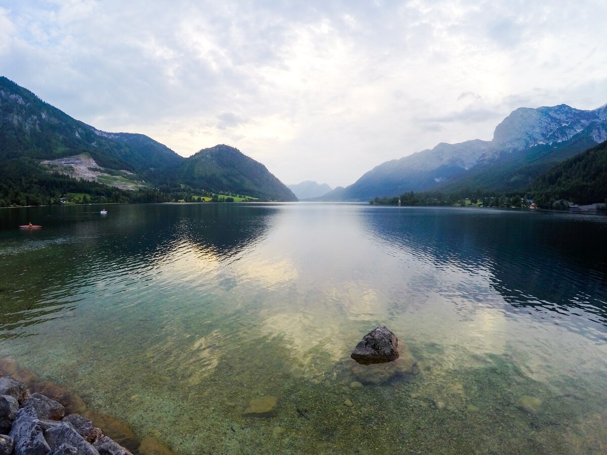 Walking on the calm side of the lake. Hallstätter See