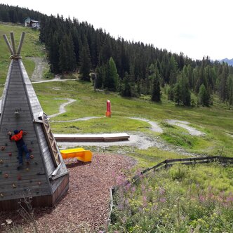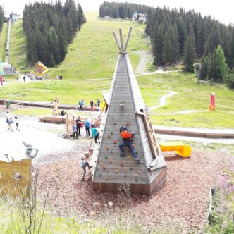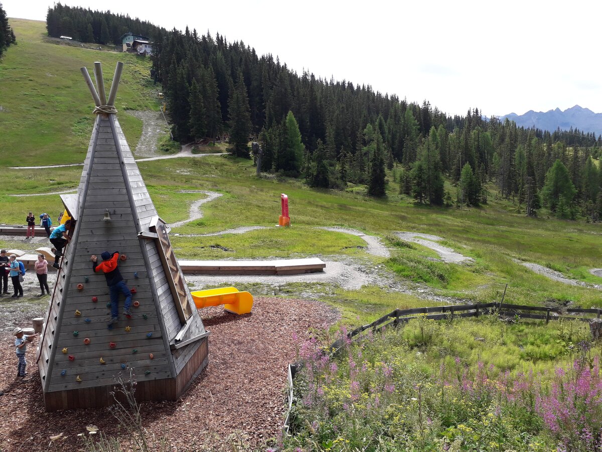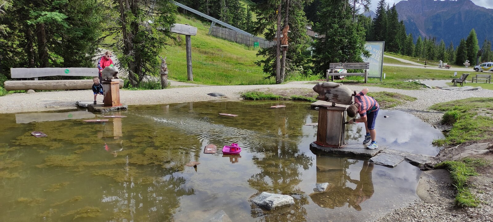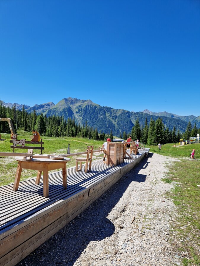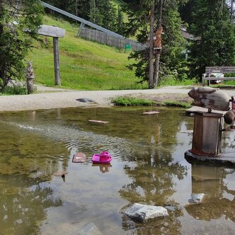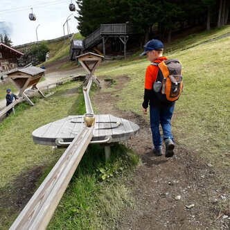 The circular trail starts at the gondola’s top station, is 1.5 kilometres long and suitable for strollers. Along the trail following Hopsi’s tracks, you can find lots of swings, slides, climbing elements, a three-part marble run and Hopsi’s own “water world” featuring a lake and new installed flumes. The perfect place for a refreshing dip in the water on hot summer days!