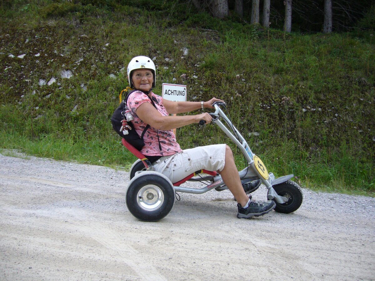 Gratis mit der lift und fur 12Euro mit der go-kart nach unter fahren es ist nicht nur fur kinder.diese frau ist schon 63!es ist schon wieder kind zu sein!