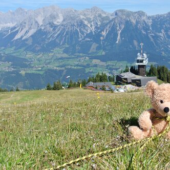 In Hopsiland - the highest playground in Styria - excitement, games and adventure are on the programme. The 1.5 km long, pram-compatible round path starts at the top station of the new Planai 10er cable car and offers many great play stations for young and old discoverers.
