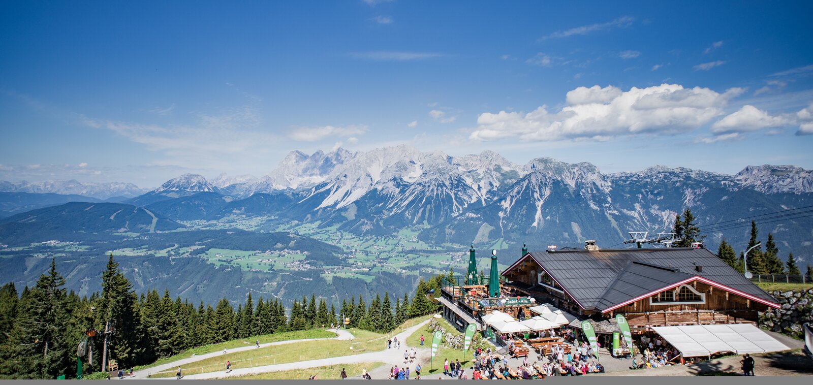 The modern 10-seater main cable car ensures a comfortable ascent to the Planai. The panoramic glazing of the new cabins provides a unique panoramic view of the Schladminger Tauern and the Dachstein massif. Bikes can now also be transported comfortably in the gondola. On the Planai there is a lot for our little guests to discover in Hopsiland. 42 km of trail fun awaits bikers of all levels in the Bikepark Schladming. In the valley station area, Planet Planai offers everything you need for a successful day on the mountain, from a sports shop to charging stations, an information point and an ATM.