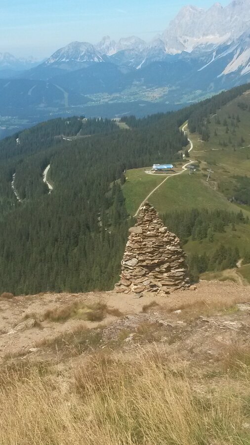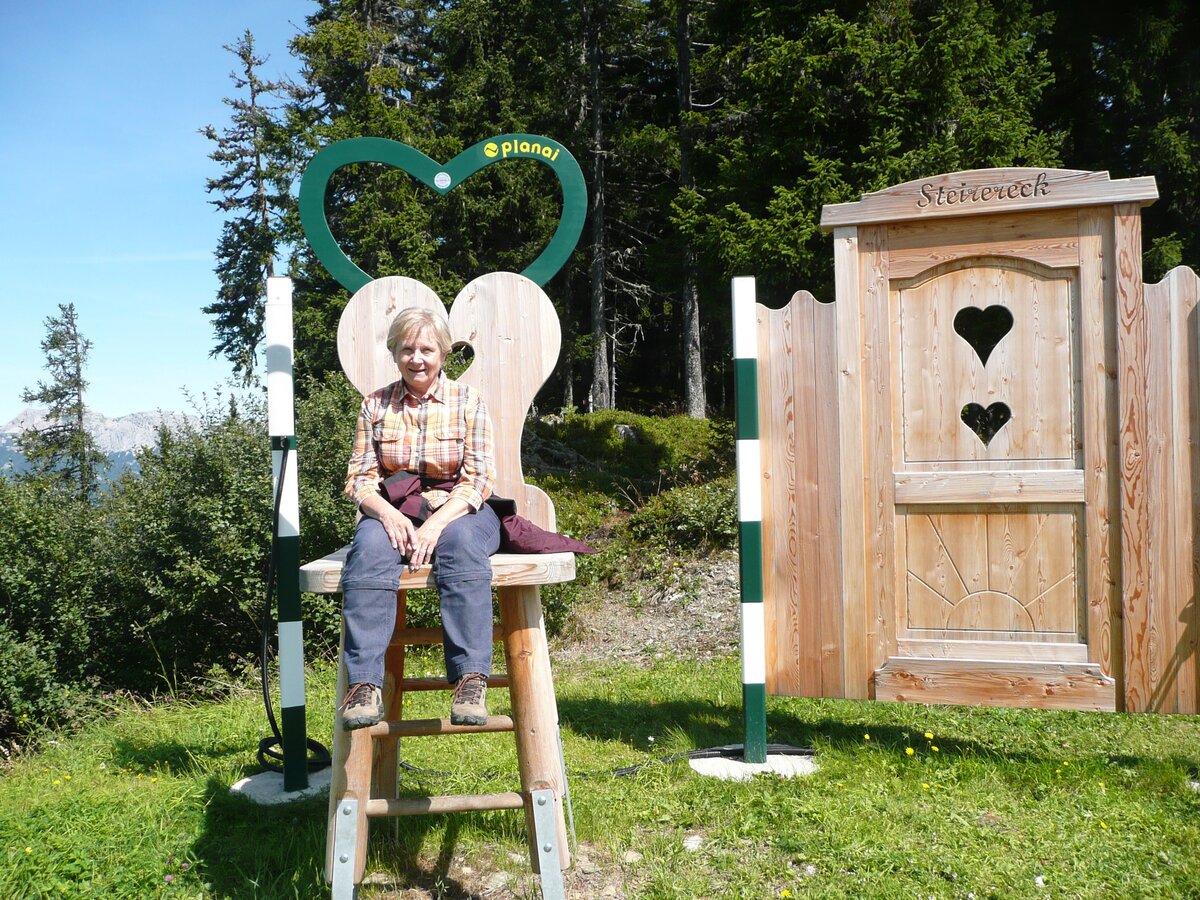Rast auf halbem Wanderweg von der Berg- zur Mittelstation der Planai.