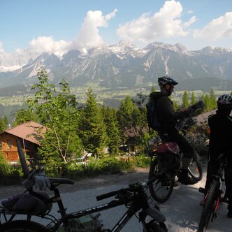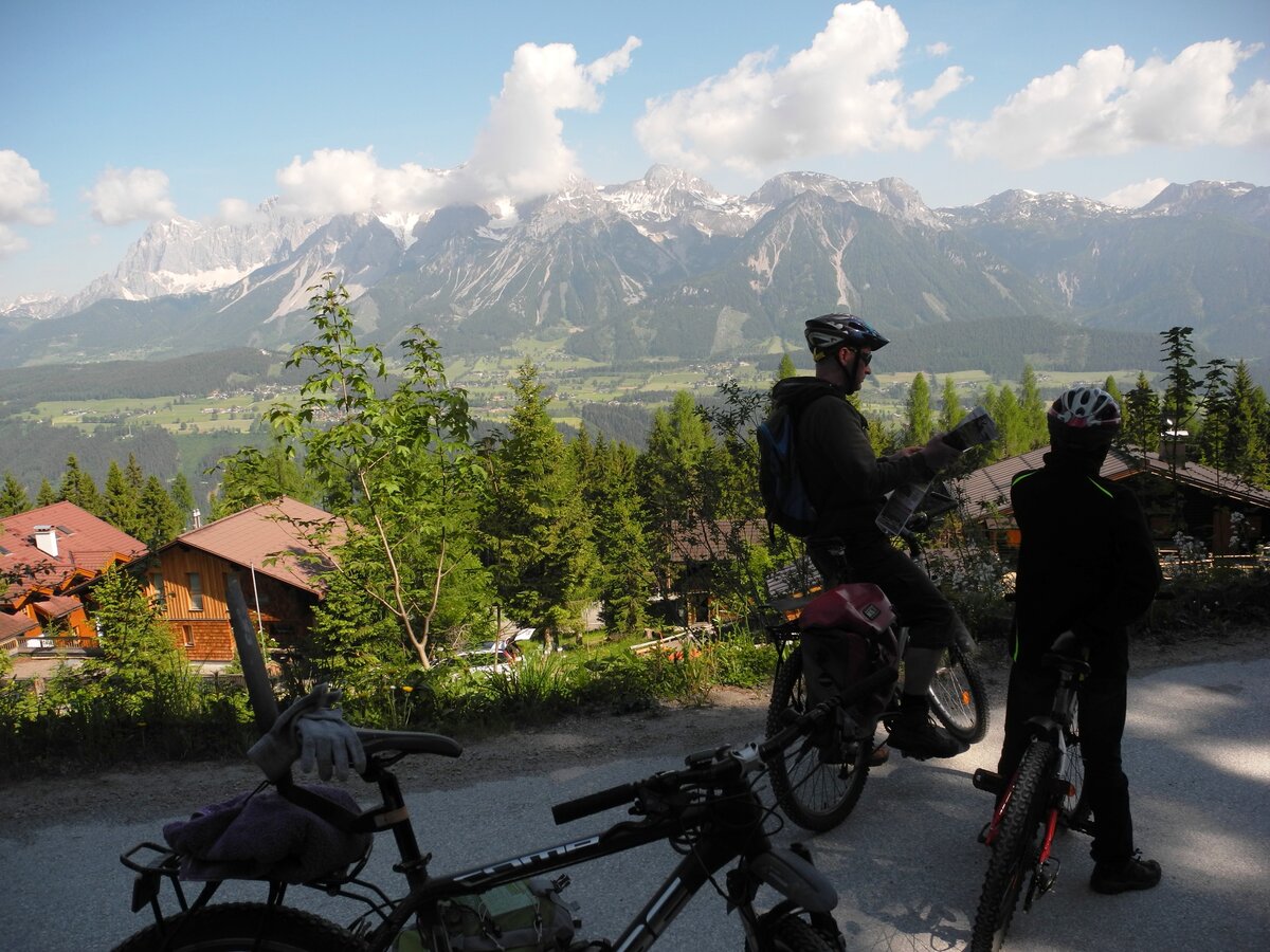 Durch die super Mitnahmemöglichkeit vom Bike mit der Bahn haben wir eine tolle Abfahrt von der Planai erlebt. Immer das tolle Panorama vor Augen.