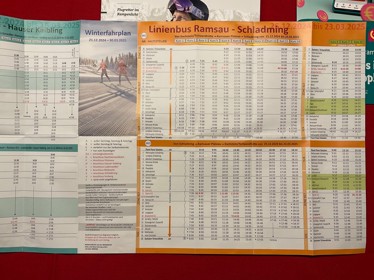 Lieber Ulrich Berkemeier! Vielen Dank für Ihr offenes Feedback zum Winterfahrplan 2024/2025. Es tut uns leid zu hören, dass die Darstellung der Linienführung für Sie nicht eindeutig war und dass es Unklarheiten bezüglich der Zielhaltestellen gab. Wir nehmen Ihre Kritik sehr ernst und werden prüfen, wie wir die Übersichtlichkeit und Benutzerfreundlichkeit des Fahrplans verbessern können. Ihr Hinweis zur Nutzung der Winterkarte für alle Ziele zu einem Pauschalpreis ist ebenfalls wertvoll. Leider können wir dies nicht umsetzen, da es sich um einen Linienverkehr handelt, der auf Basis des Steirischen Verkehrsverbundes bepreist wird. Wir danken Ihnen jedoch für diese Anregung und schätzen Ihre Rückmeldung sehr. Vielen Dank, dass Sie sich die Zeit genommen haben, uns Ihre Erfahrungen mitzuteilen. Es hilft uns, unseren Service für alle Fahrgäste zu verbessern.