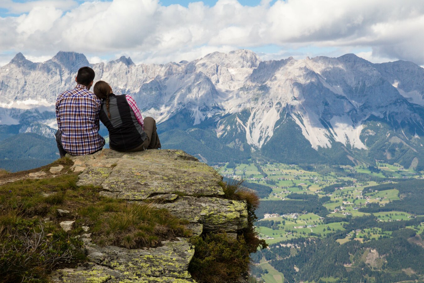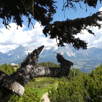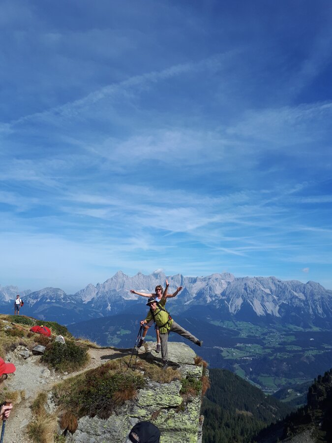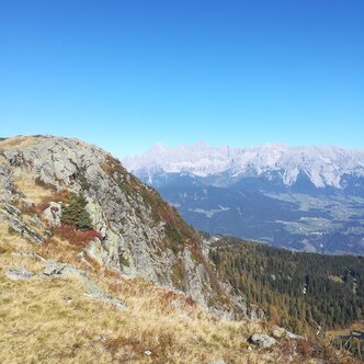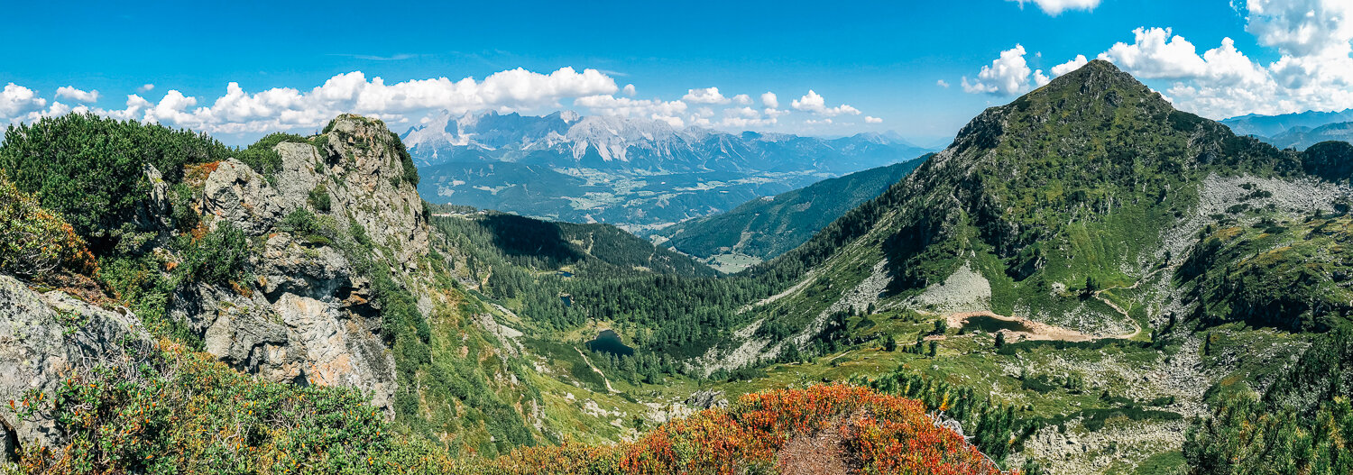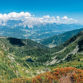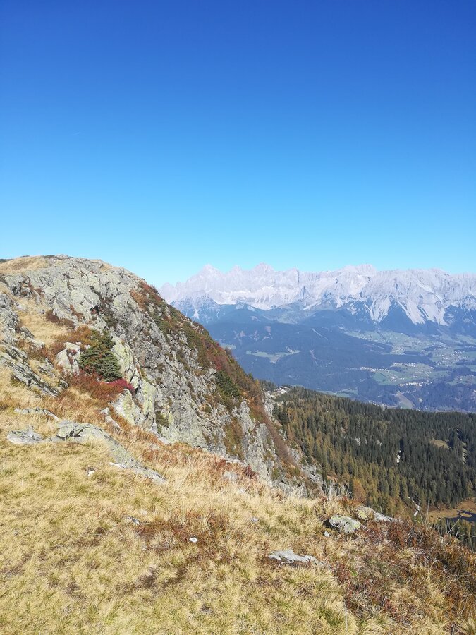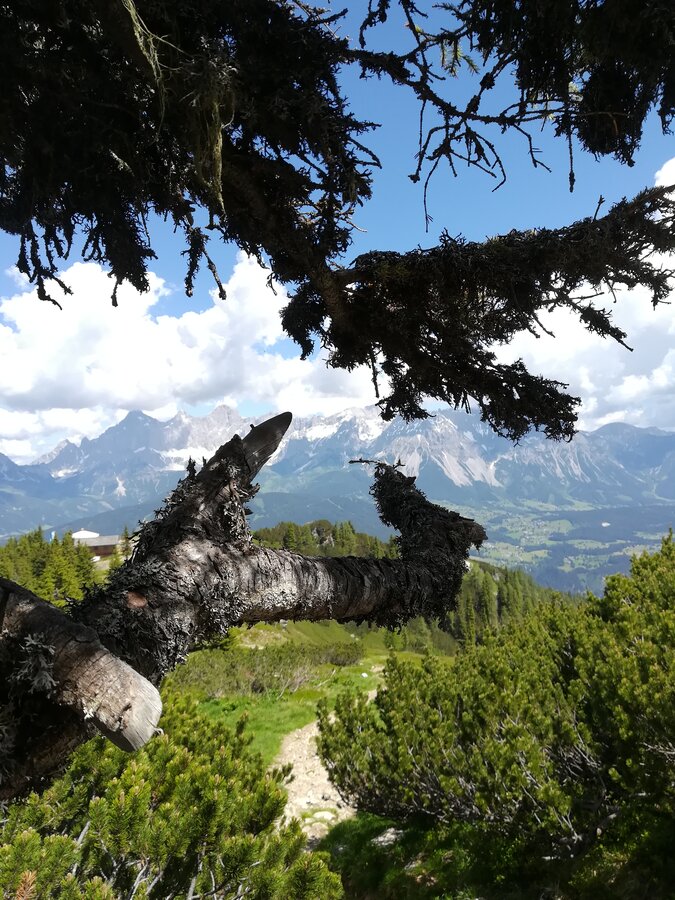 Schon der Aufstieg zur Rundwegwanderung mit Blick auf den Dachstein , ein Erlebnis.