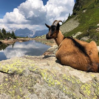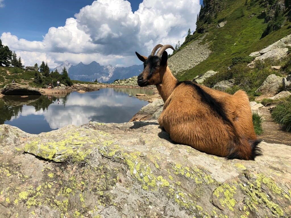 Familienfreundliche Wanderung zum wunderschönen Spiegelsee. Zur Freude unserer Kinder machten auch ein paar Ziegen einen Ausflug zum See :-)
