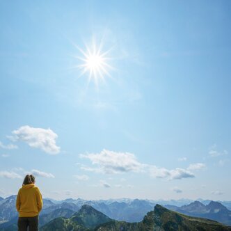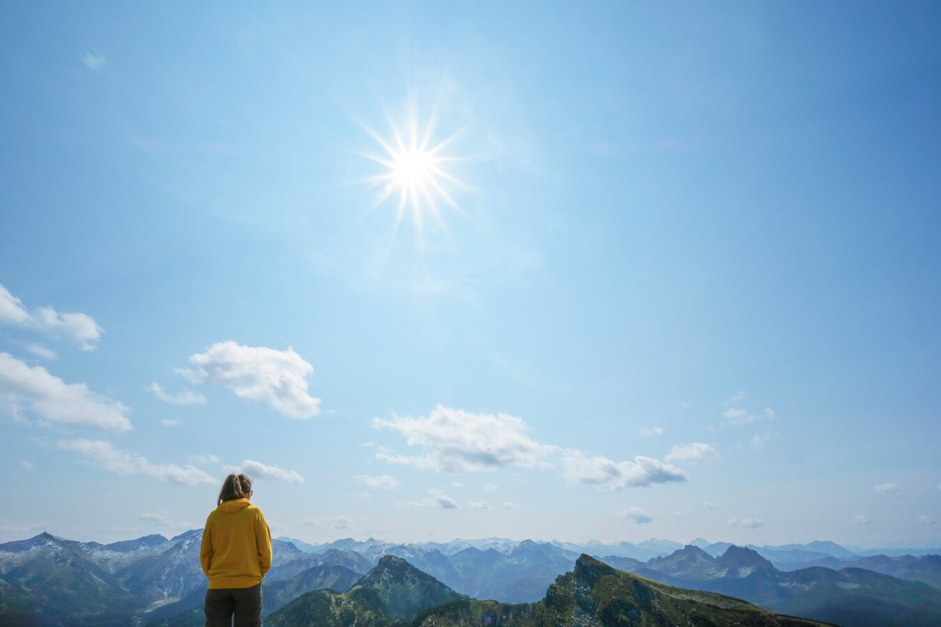 Blick von der Schoberspitze auf die wunderschöne Berglandschaft bei Kaiserwetter.