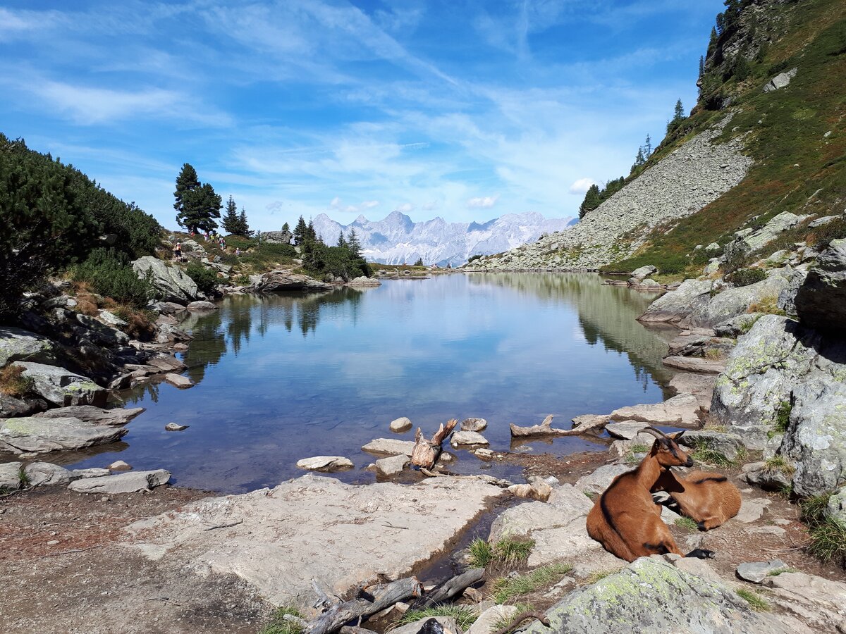 wunderschöne Tour zum Spiegelsee. Einfach nur atemberaubende Sicht auf den Spiegelsee in Gesellschaft mit ganz entspannten Geißen.