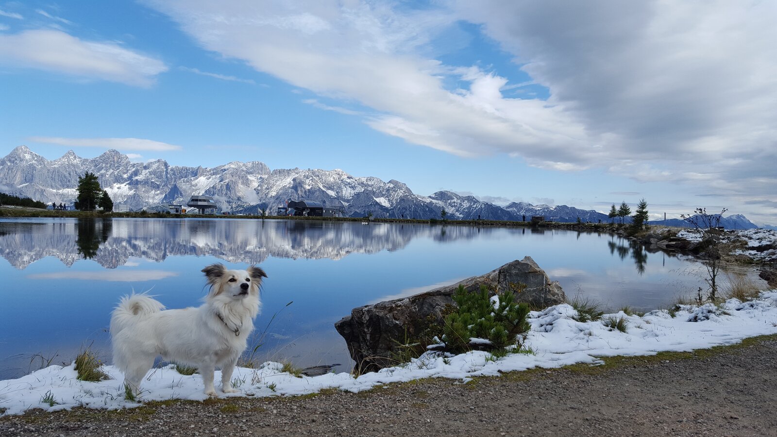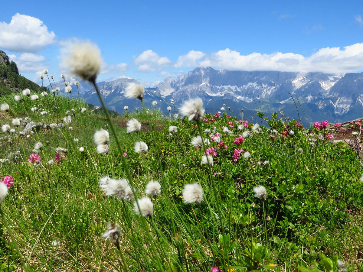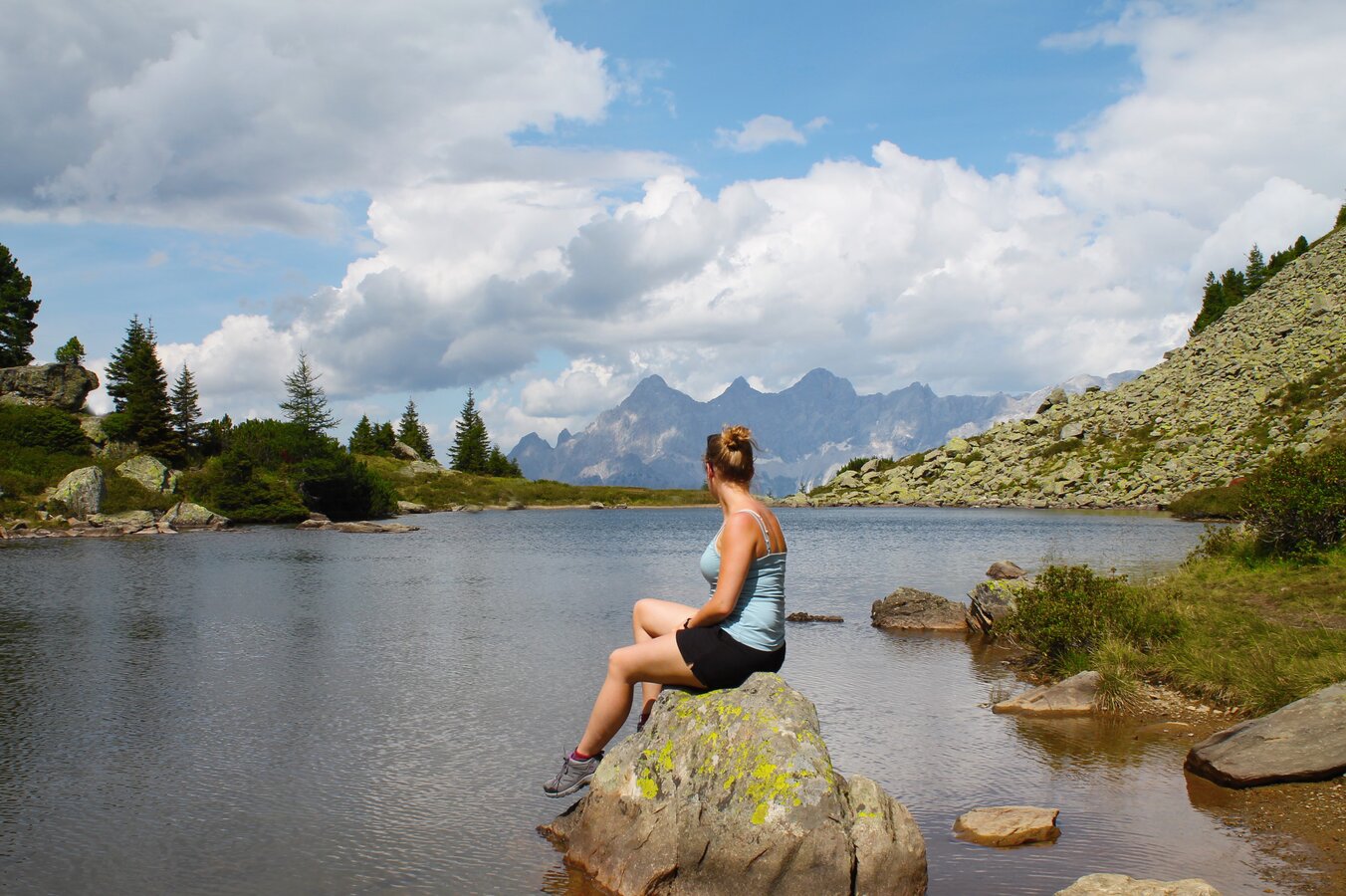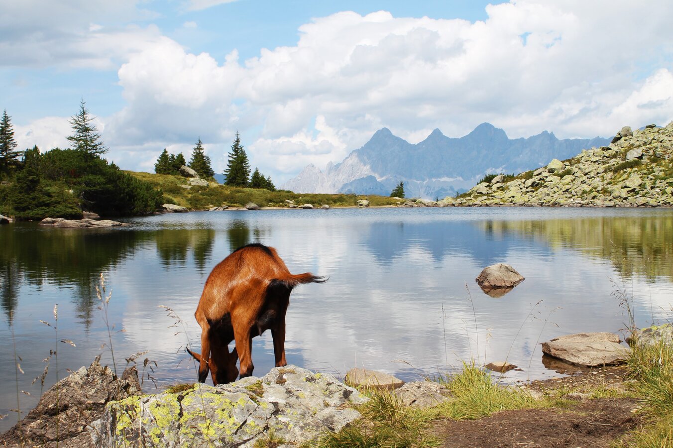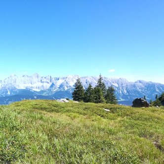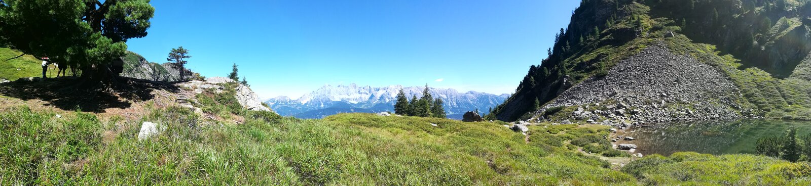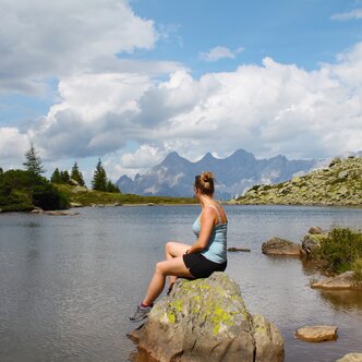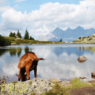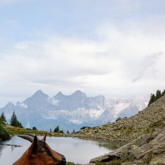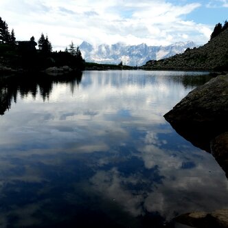 Beim Spiegelsee auf der Reiteralm kann man die wunderbare Aussicht auf den Dachstein genießen.