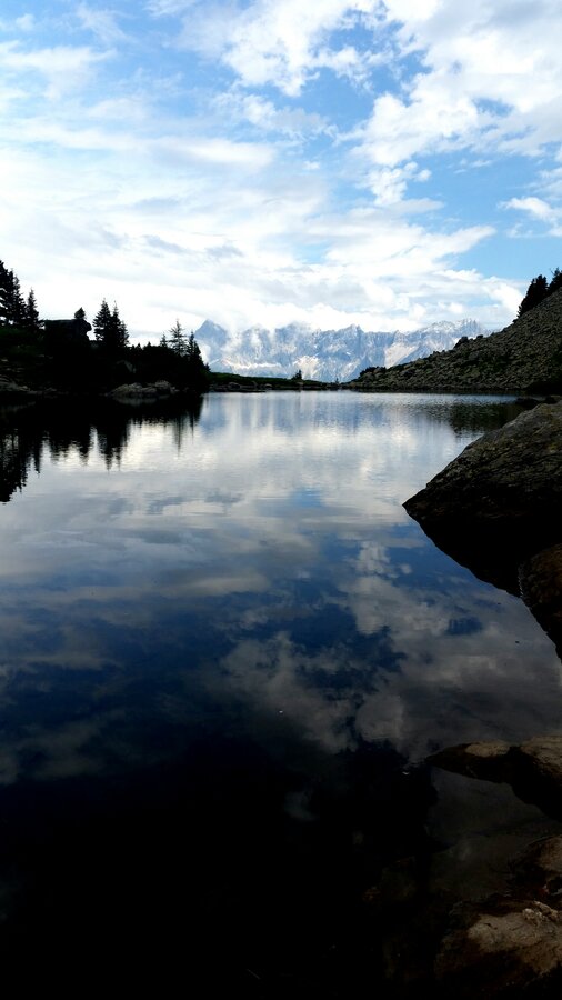 Die Wanderung von der Reiteralm zum Spiegelsee ist wirklich empfehlenswert. Bereits der Weg begeistert mit einigen sehenswerten Eindrücken, doch diese werden vom Spiegelsee natürlich noch übertroffen. Wir hatten das Glück perfektes Bergwetter zu erwischen. Somit spiegelte sich der Dachstein wunderbar im glasklaren Wasser...Spiegelsee eben :-)