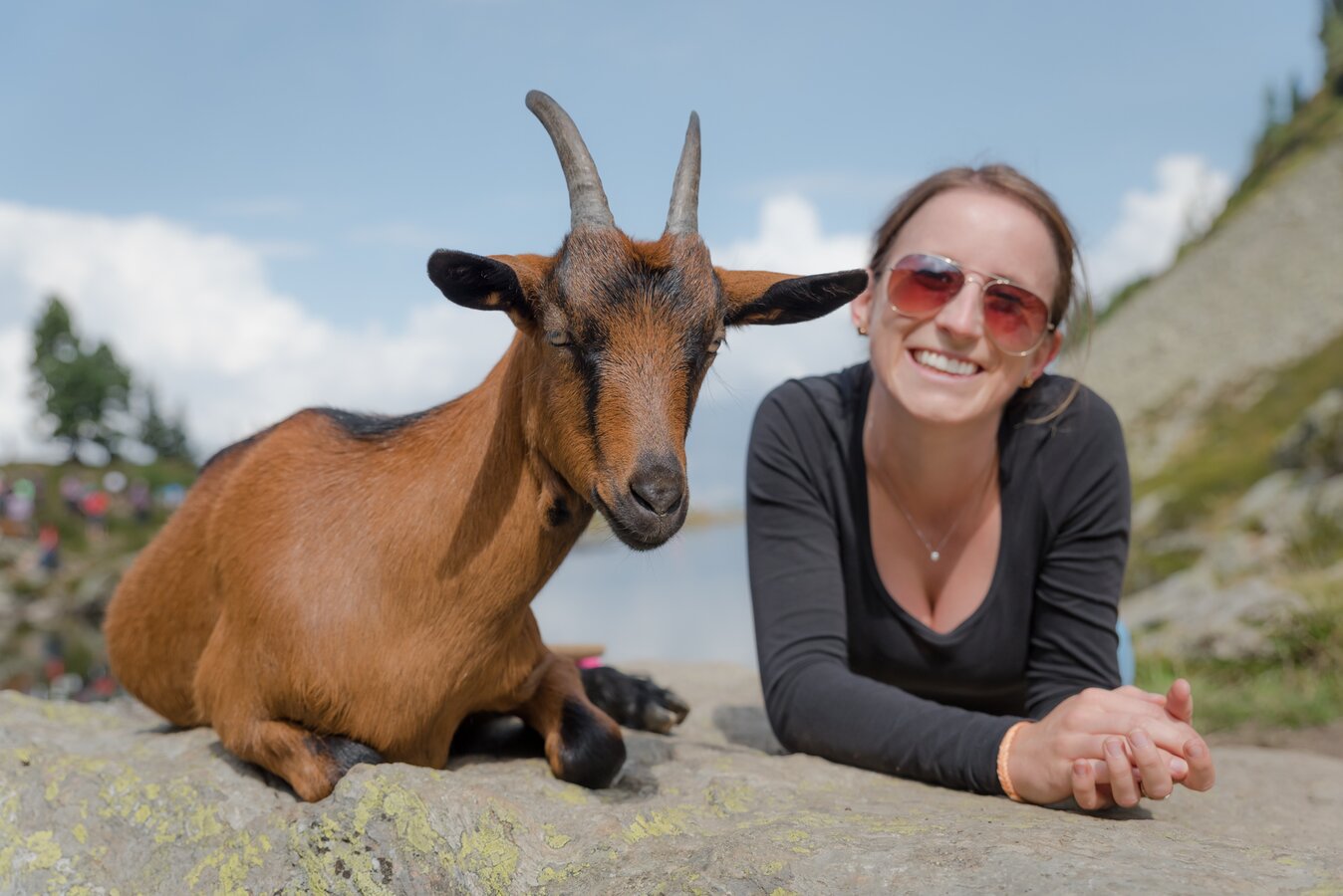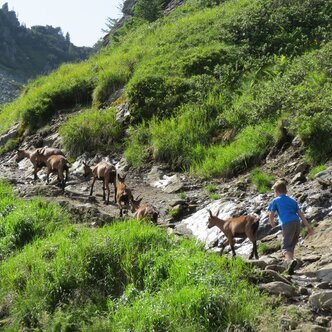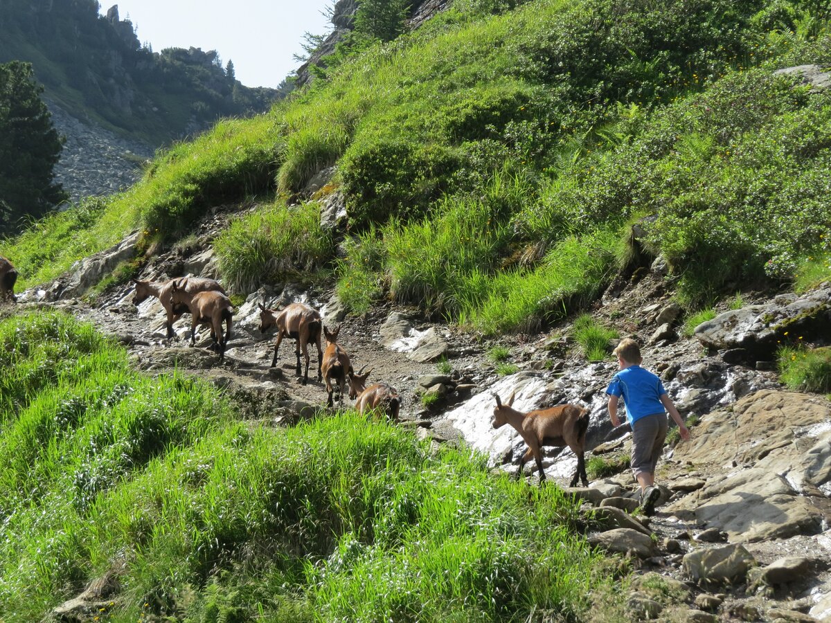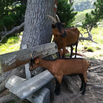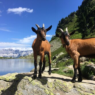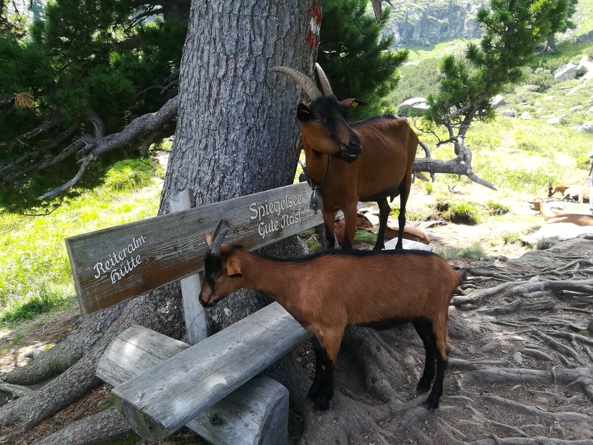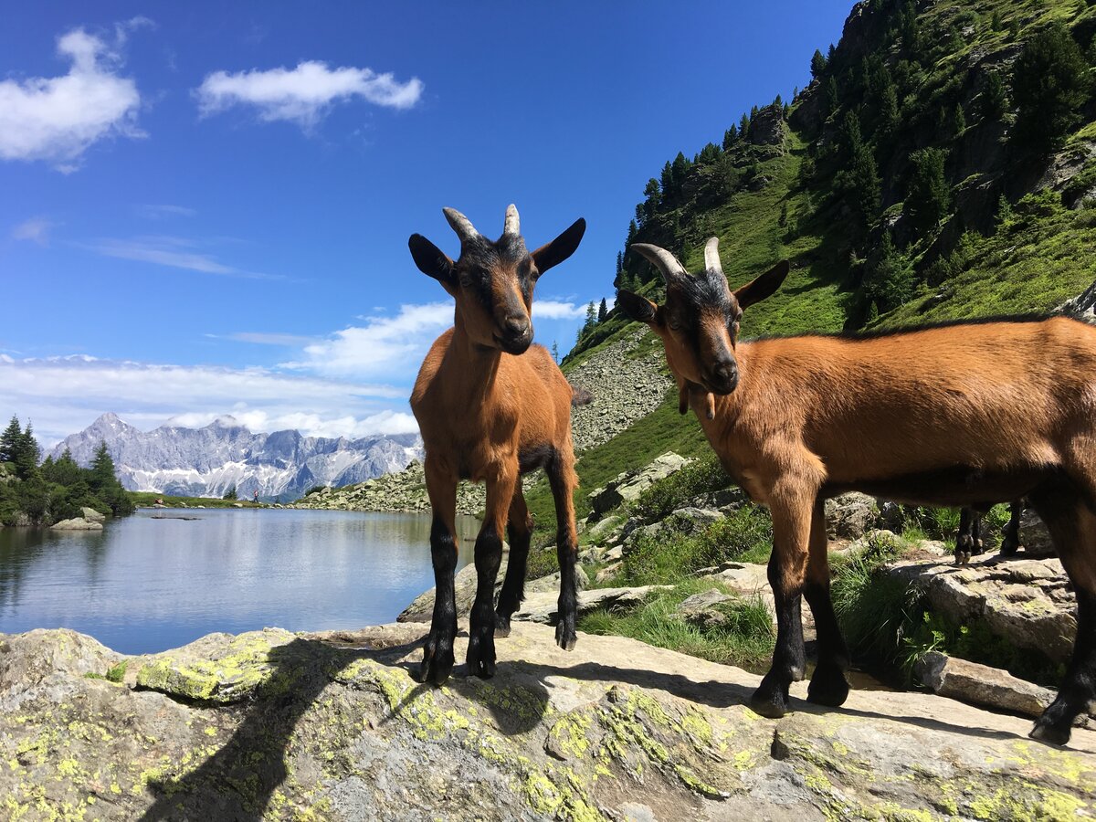 Bergziegen am Spiegelsee bei Traumwanderwetter