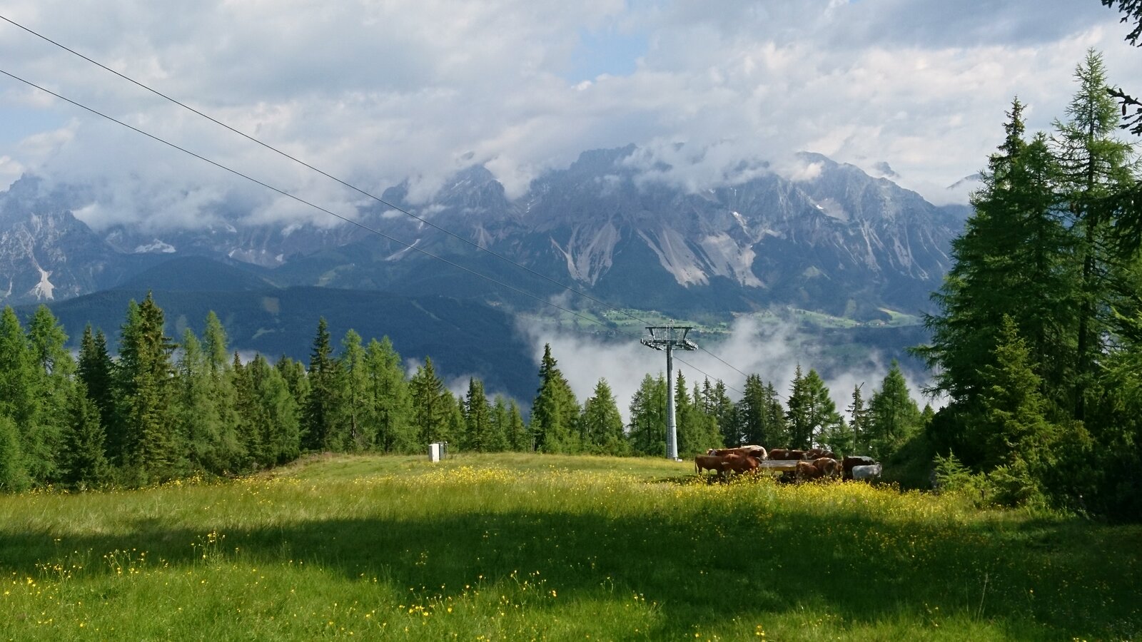 Diese Kühe machen keine Mühe, sie fressen gemütlich ihr Futter und ich genieße den wunderbaren Ausblick auf der Reiteralm