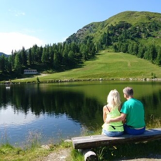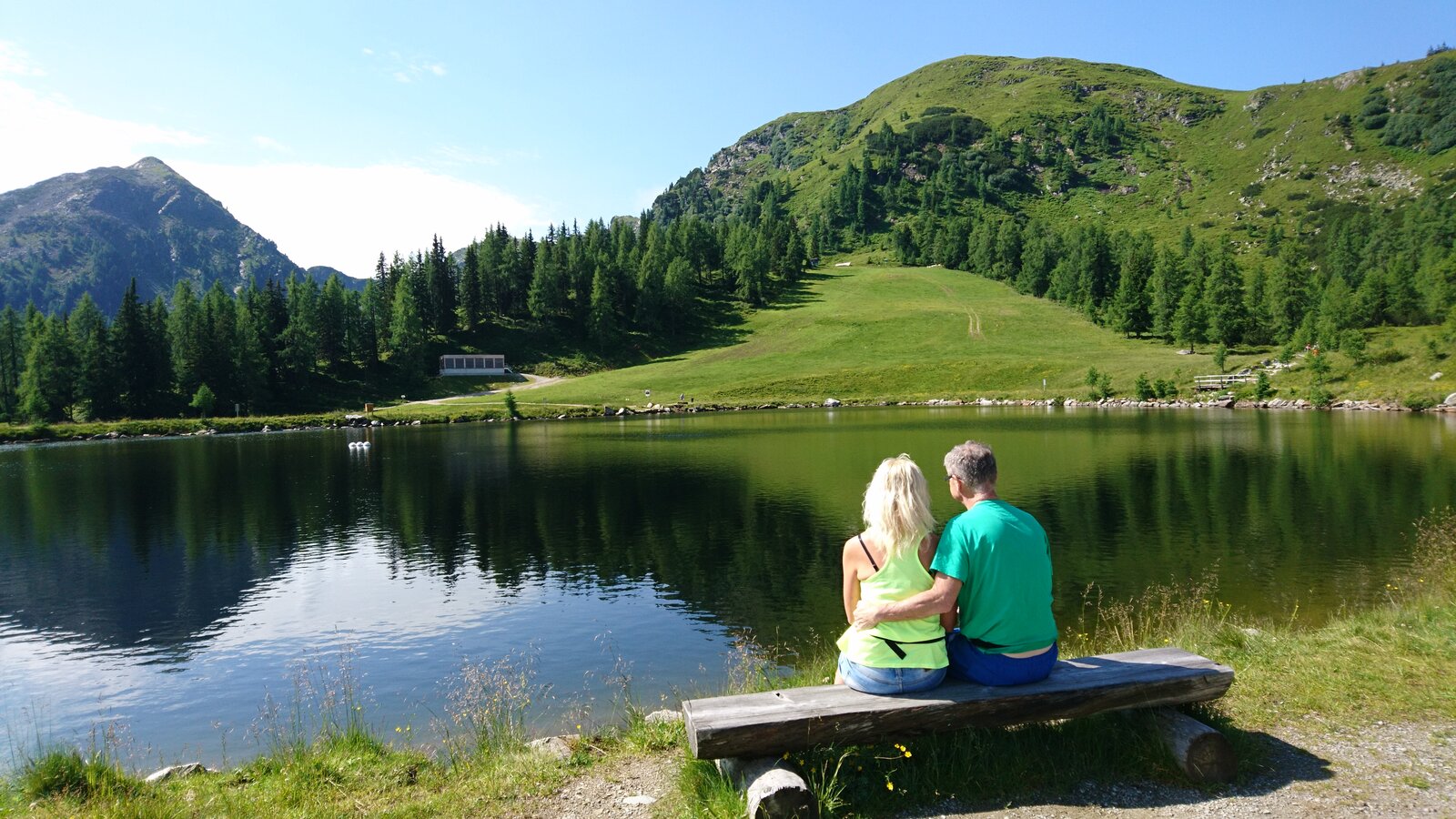 Meine Eltern genießen den Blick auf den Spiegelsee. Und ich genieße ihren Anblick, wenn ich seh, wie glücklich die beiden sind und den wohlverdienten Urlaub genießen.