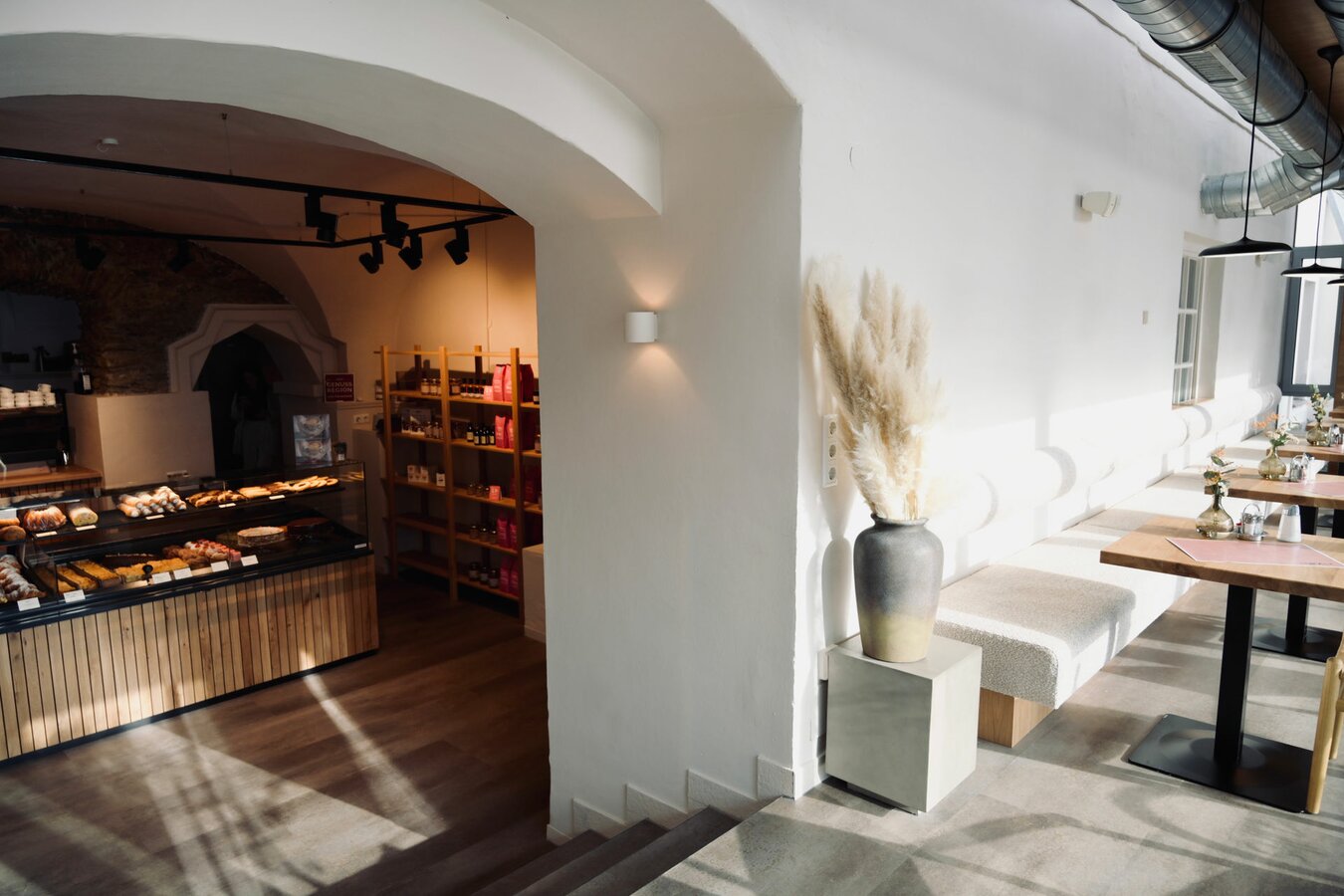 Also the flair and the architecture of the castle, which is reflected in 3 guest rooms with 68 seats. From the winter garden you have a perfect view to the “Schlossplatz”. Everyone comes by here. For bread, pastries and coffee to go, for breakfast, for lunch, for afternoon coffee & cake or for wine at the end of the day.