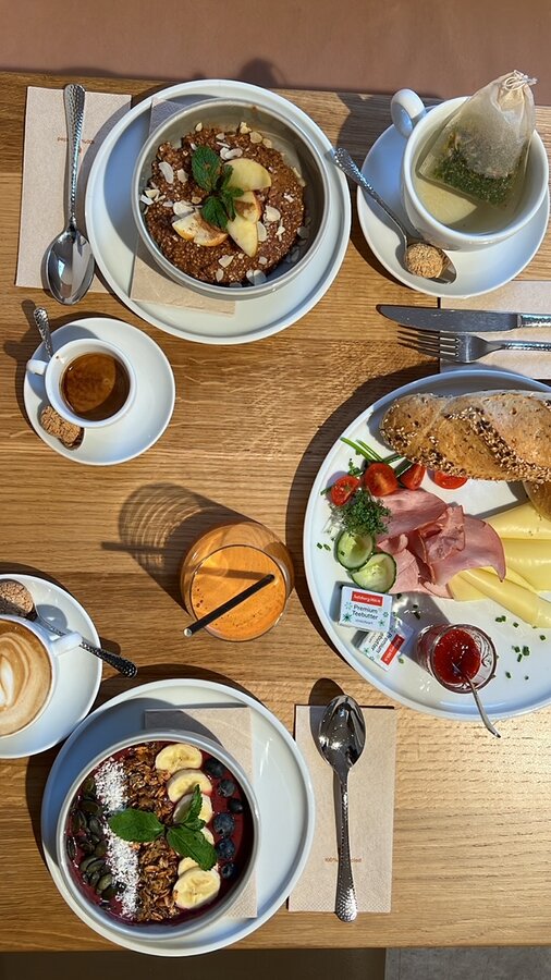 If you decide to linger, there are endless breakfast variations from classic to trendy – for example quinoa bowl, porridge, styrian breakfast, shakshuka, egg dishes. Quality, regionality and a bit of internationality quasi.