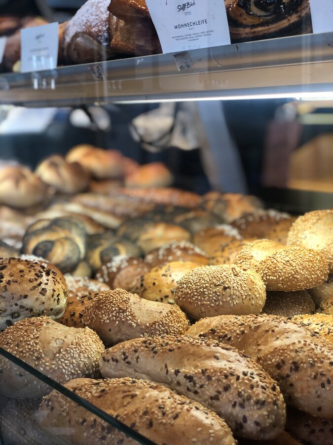 You can stop off at sunrise and linger in the scent of fresh bread and coffee. The coffee from a small Styrian coffee roaster is also available to go. Fresh bread, rolls, pastries and cakes anyway, all day long.