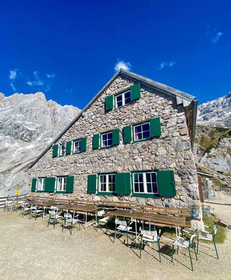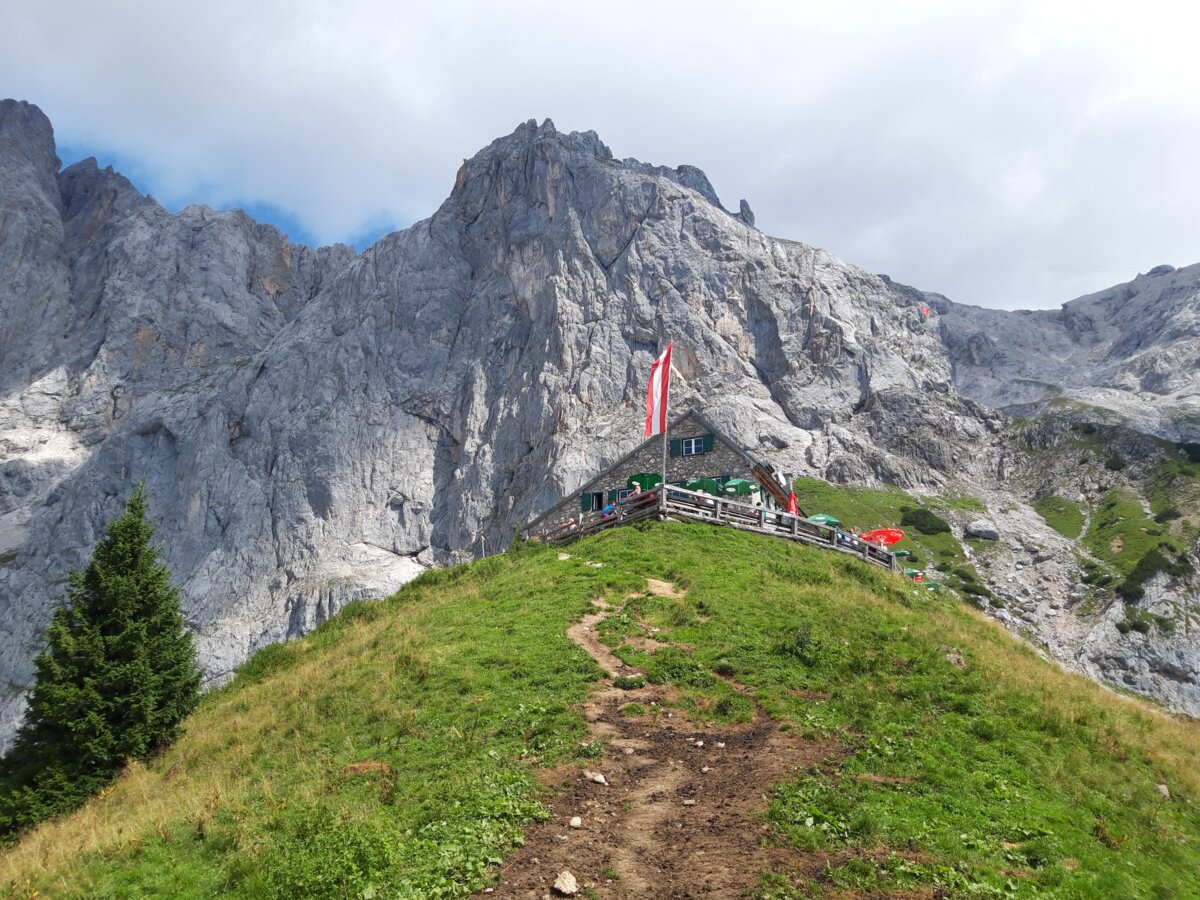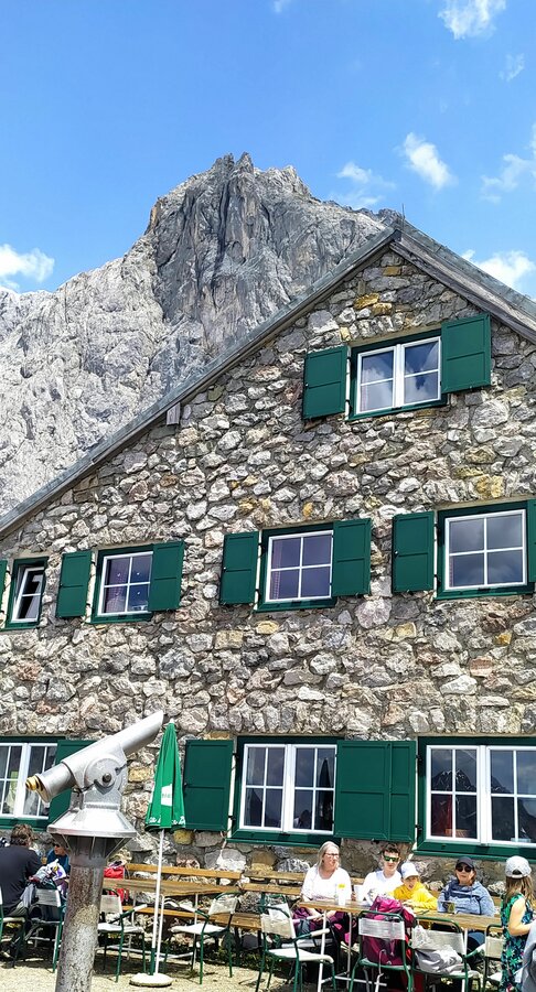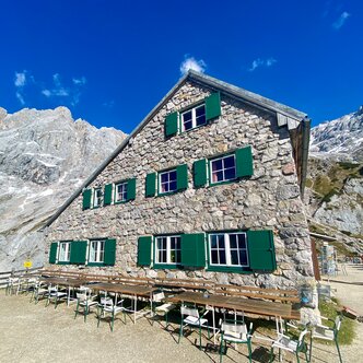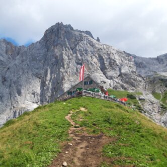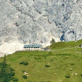 The Südwandhütte (1.910 m) benefits from a convenient location at the foot of the south face of the Dachstein, within Ramsau’s high-alpine pasture region. Enjoy the magnificent panorama from our spacious terrace onto the impressive Dachstein massif, the Schladminger and Radstädter Tauern. Let us spoil you with food and drink on our sunny terrace or our guest rooms. On our menu, you will find delicious soups, main courses and cold snacks.