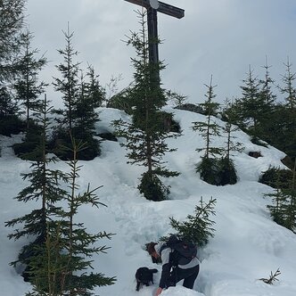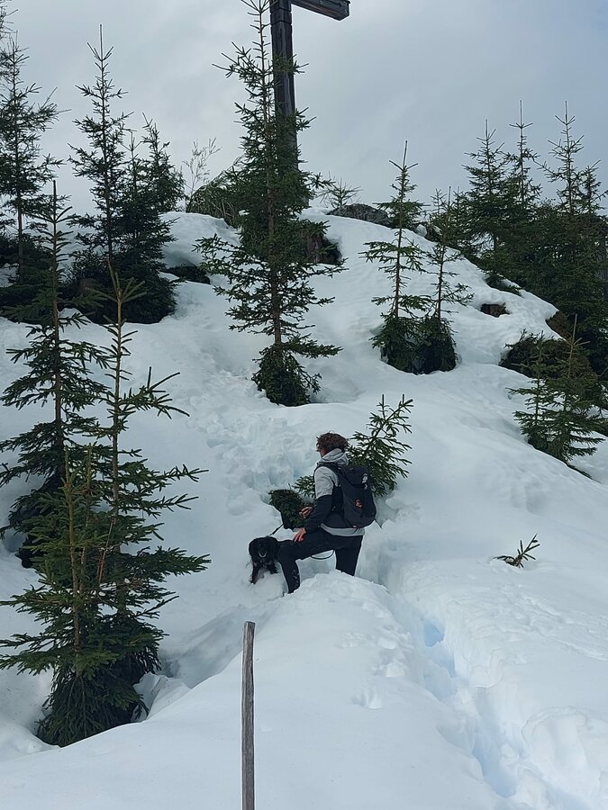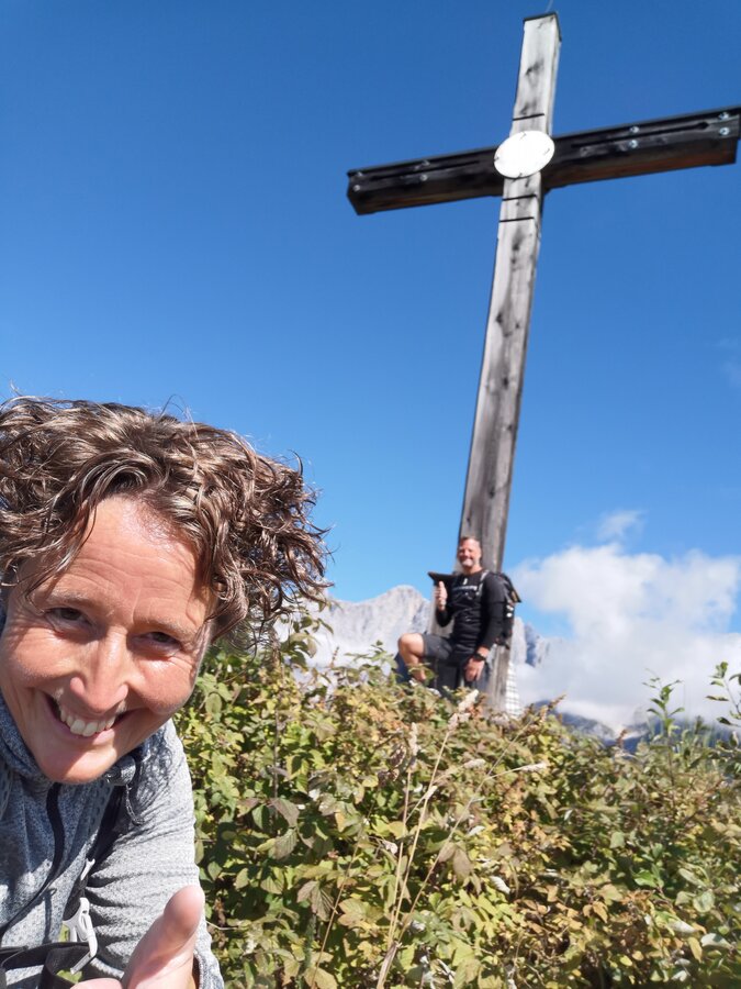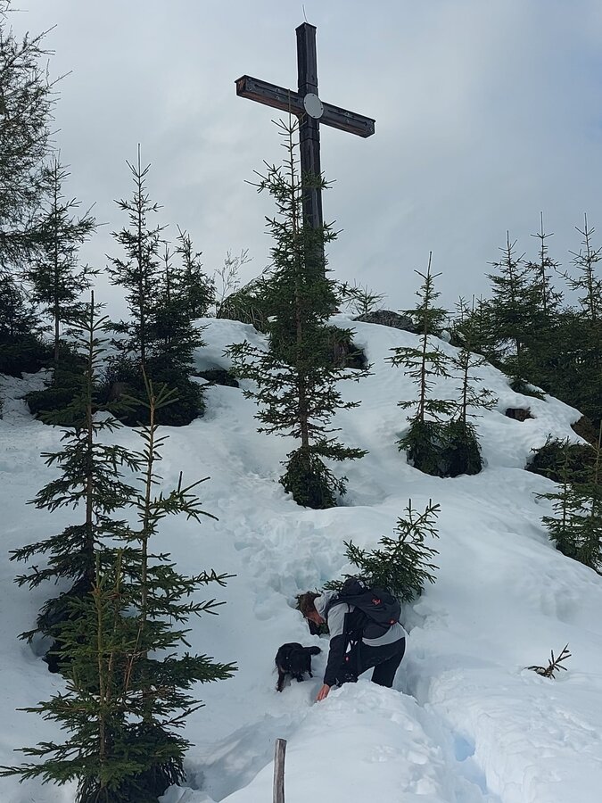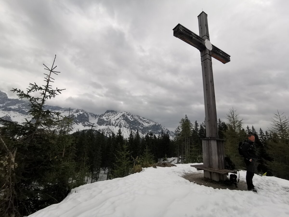 Wir mussten vom Hauptweg aus durch ganz schön viel Schnee, damit wir es zum Gipfelkreuz schaffen. Sind ein paar mal fast stecken geblieben, aber die Mühen haben sich gelohnt! Nächste Jahr kommen wir wieder, dann hoffentlich ohne Schnee! 😉Der Weg von der Gondel zum Gipfelkreuz ist bis auf ein paar Meter sogar mit dem Kinderwagen zu erreichen und auch recht einfach zu gehen! Und bei schönem Wetter eine mega tolle Aussicht auf den Dachstein! 🏔️