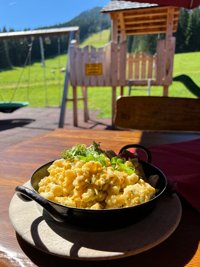 Hut specialities such as Ripperlessen, Hüttenpfandl and steaks are only available by reservation.