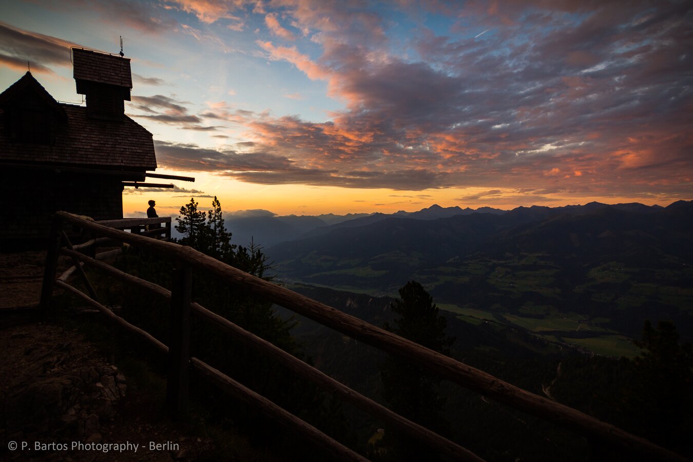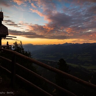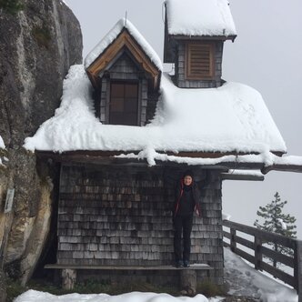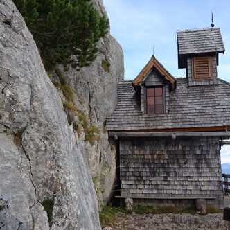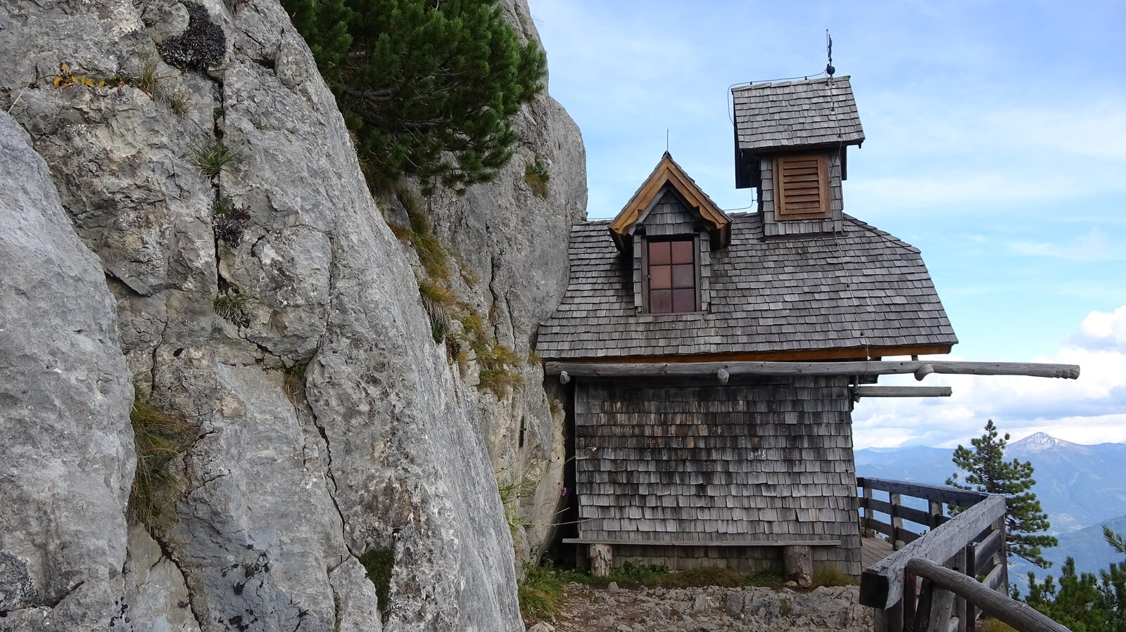 From the parking lot you can reach the listed Friedenskircherl, built in 1902, after a 30-minute walk. The Friedenskircherl is literally embedded in the rock face and the view from the small terrace is overwhelming.