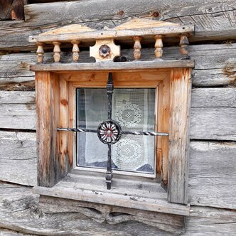 Nicht nur die Landschaft, auch die Almhütte gibt schöne Details preis.