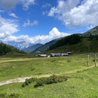 The Ursprungalm lies at an altitude of 1,610m at the foot of the Steirische Kalkspitze in the Schladminger Tauern.
