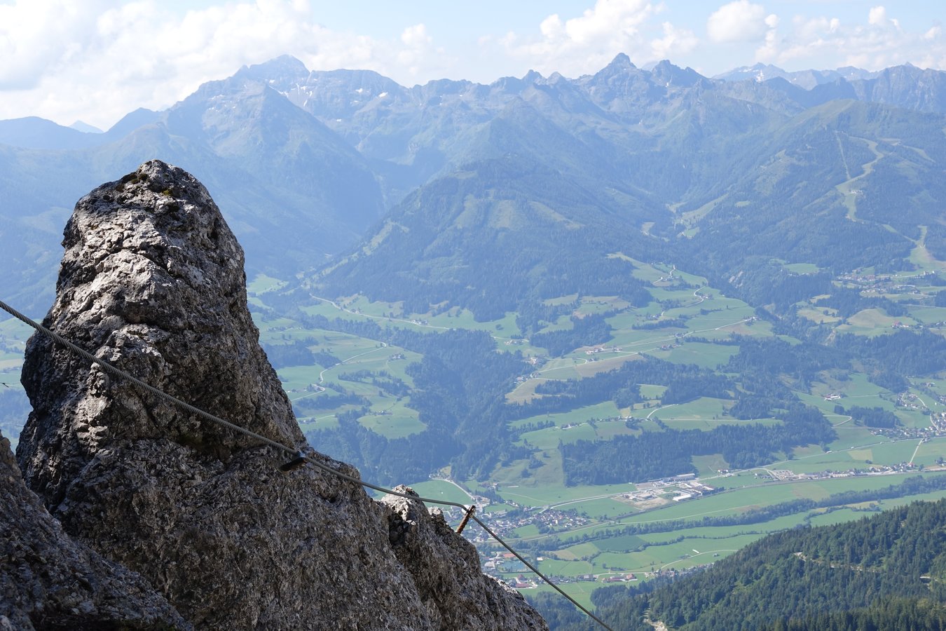 Beautiful via ferrata garden below the summit of the Stoderzinken. The tours can be ideally combined with a summit climb, at the end there are five variants with different levels of difficulty to choose from. The landscape starts impressively at the Friedenskircherl, which stands in the middle of the rock face. If you are looking for even more adventure, combine your trip with a zipline ride. (the largest cable gliding facility in the Alps. Information at www.zipline.at).