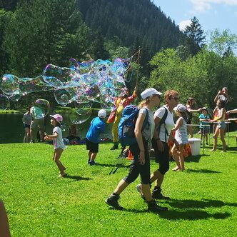 From 15.00 - 17.00 in the Waldhäuslalm with music, games, face painting, colouring, handicrafts, clown Lupino and much more.