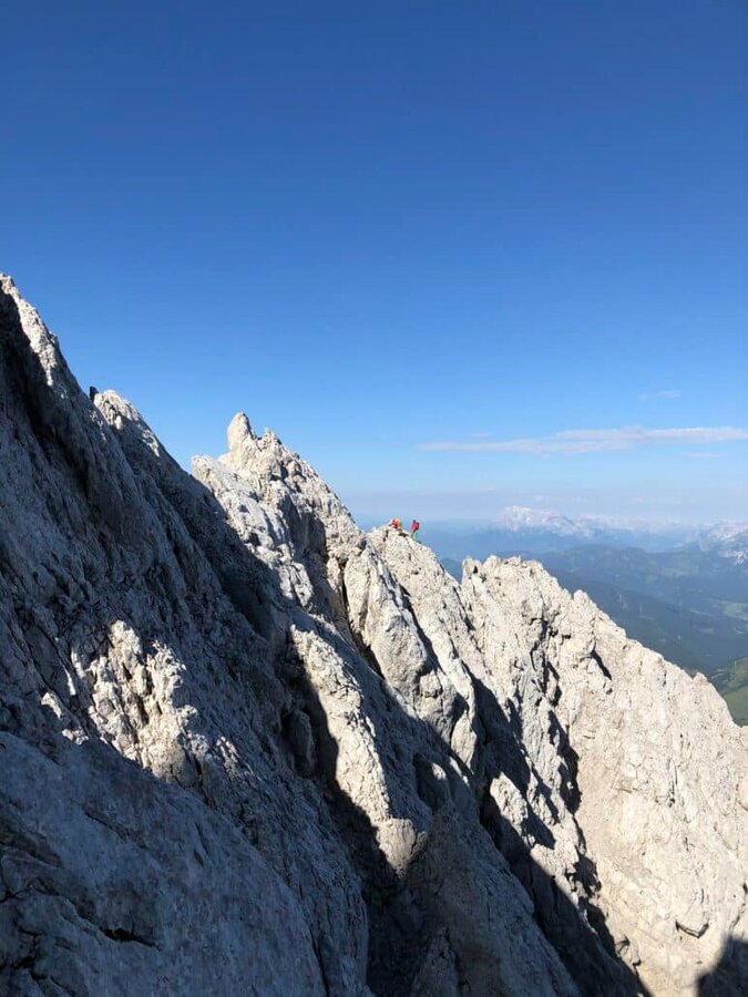 The longest ridge in the Eastern Alps with unbelievable 2000 meters of climbing. Is a risky venture for experienced alpinists due to the length and challenging path finding.
