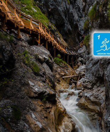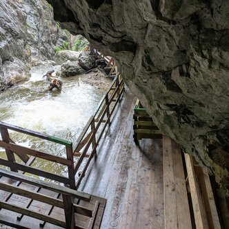 In millennia of digging, the Wörschachbach stream has rushed and wildly dug its way through the rock. It is hard to believe that more than 130 years ago traders were still driving horse-drawn carts here and lumberjacks were laboriously using the power of the water to transport the wood down to the valley. The later construction of the Klammsteig was a true pioneering achievement.