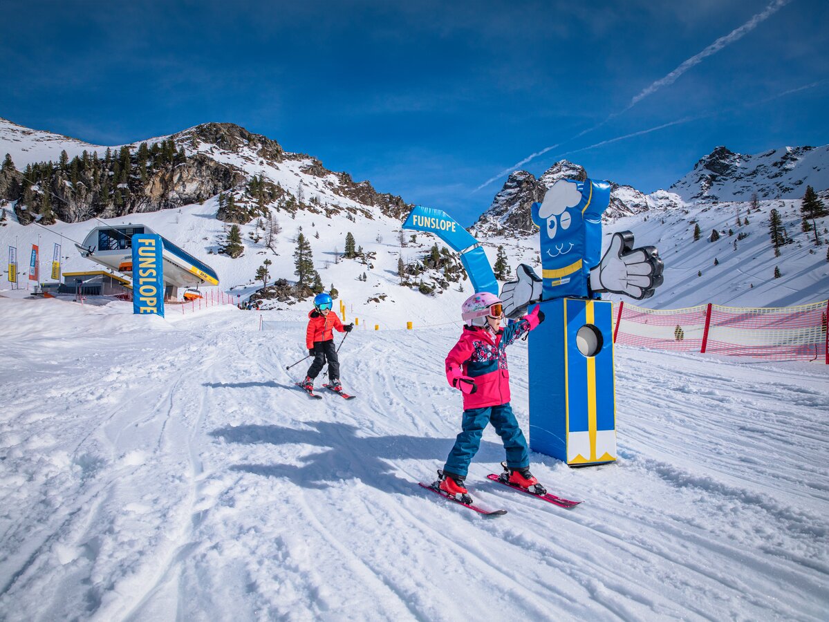 With the Hoop Race, a speed booster, a Low Five hand, a Sound High Five hand, a tunnel as well as a Sound Slopy, there are also great "non-snow elements" in the popular piste attraction and thus ensure even more action on the fun piste. But be careful: The Slope Cop measures your speed!