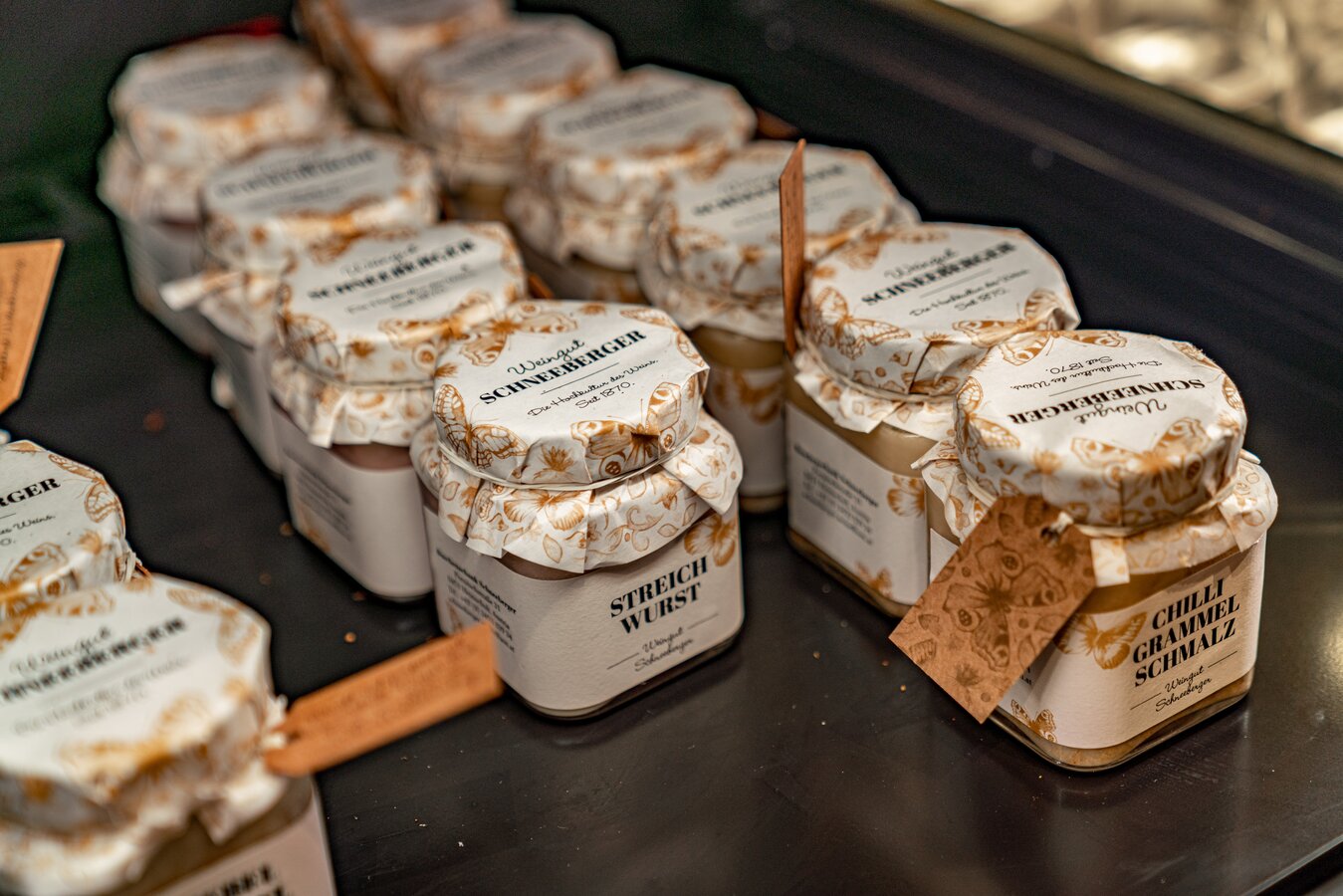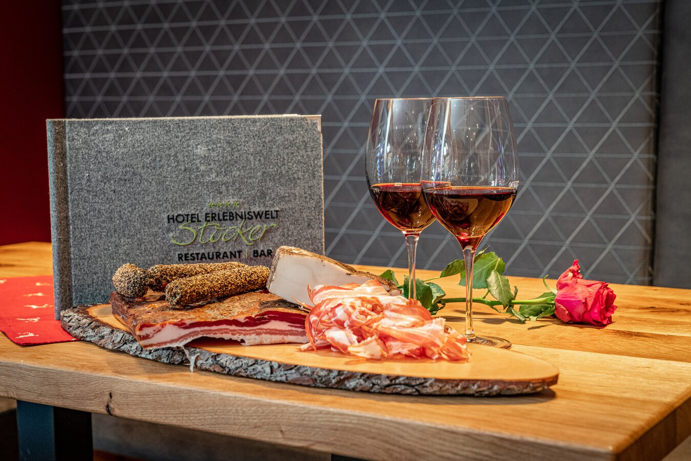 Delicious bacon from the Gailtal Valley—the "Valley of Bacon"—, Styrian ham roast, cheese from the Moserhof (Haus/Ennstal), chili lard, complemented by a select selection of wines.