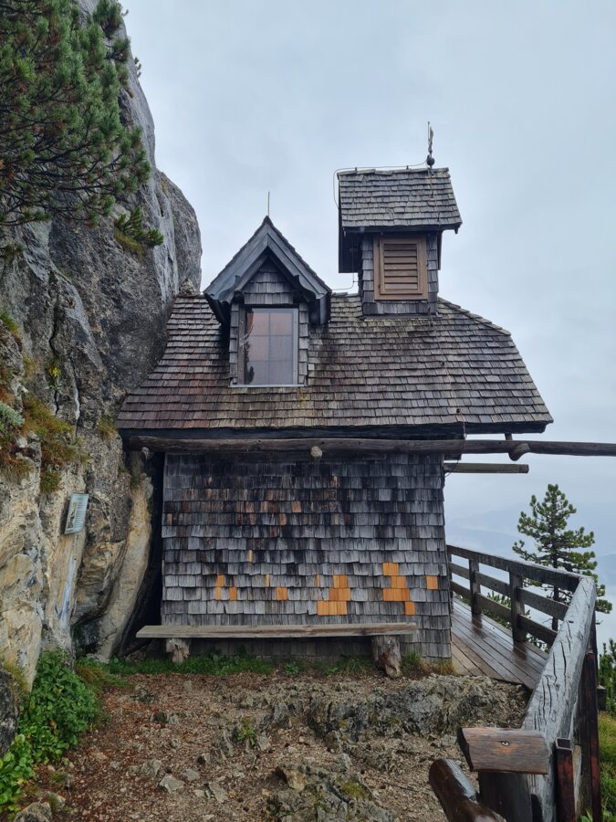 You need to know about the Friedenskircherl: The Friedenskircherl was built in 1902 by Emil Ritter von Horstig and was later chosen as the most beautiful place in Austria 120 years later. It was also visited by Peter Rosegger at Stoderzinken, who wrote the following verse in consideration of its beauty: "What should I write in these mountains full of sunshine? I can only remain silent in reverence and be blessed." In 1982, a special stamp was dedicated to the Friedenskircherl to commemorate its 80th anniversary. Since 1993, the Friedenskircherl has been owned by the Austrian Mountain Rescue, Gröbming branch, which also takes care of its maintenance. The Stoderzinken, and especially the Friedenskircherl, were already filming locations for the ZDF series 'Die Bergretter' which is filmed throughout the region, primarily in Ramsau am Dachstein. In the 3rd season, even the crash of the Friedenskircherl is depicted cinematically. During the filming of 'Die Bergretter', real mountain rescue workers, such as Heri Eisl, are often present to assist. A replica of the Friedenskircherl is located at the eastern entrance of Gröbming on the federal road B320. There is also a small model available in the Museum Gröbming or at the information office in Gröbming.>> Here is the tour to the Friedenskircherl <<