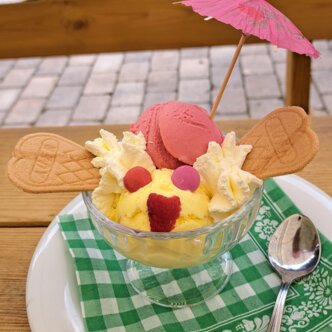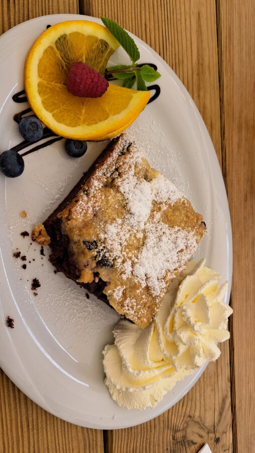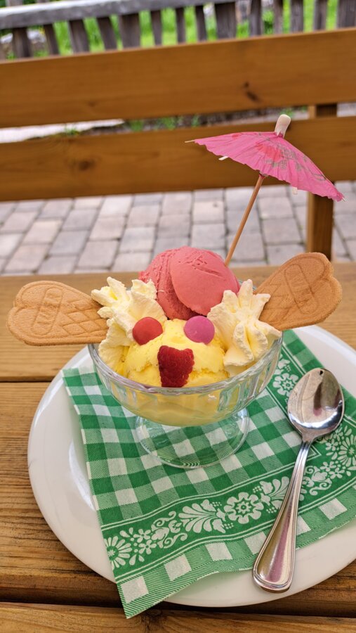 Das Essen ist sehr gut und wird sehr schnell von freundlichem Personal serviert. Die Eiskarte hat eine tolle Auswahl. Ein kleiner Spielplatz und Hasen sind ein tolles Erlebnis für Kinder. In der Nähe wartet der Riesachfall.