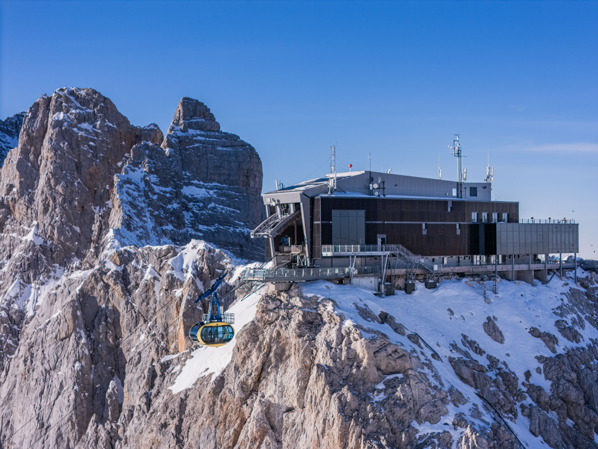 The completely refurbished Dachstein Südwandbahn mountain station at 2,700 metres above sea level focuses on sustainability and energy efficiency with a 125 KWp photovoltaic system. The photovoltaic glass panelling covers 1,000 m2 and ensures that 80 % of the energy required for the mountain station is generated in-house.