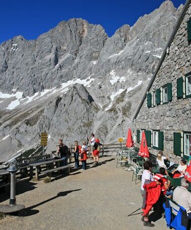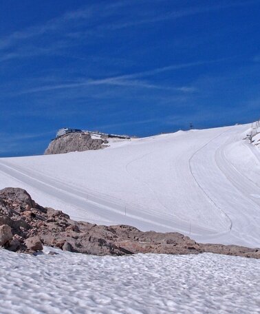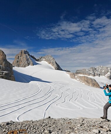 The centrepiece of the mountain station is the brand new glacier restaurant with breathtaking 280-degree views and a spacious outdoor terrace. The new "Himmelsbar" on the roof offers a view of the imposing south faces of the Dachstein.