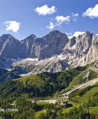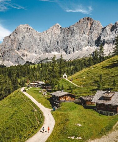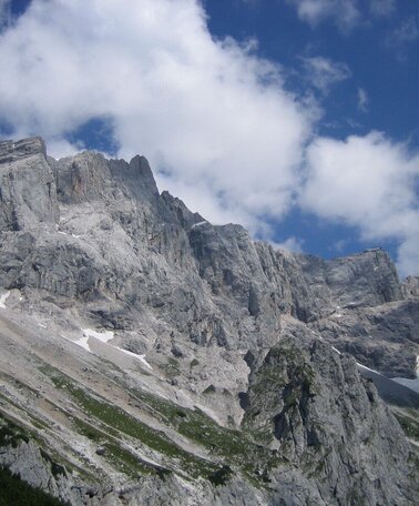 Hiking trails or steeper climbs up to the vertical rock faces of the Dachstein South Faces.