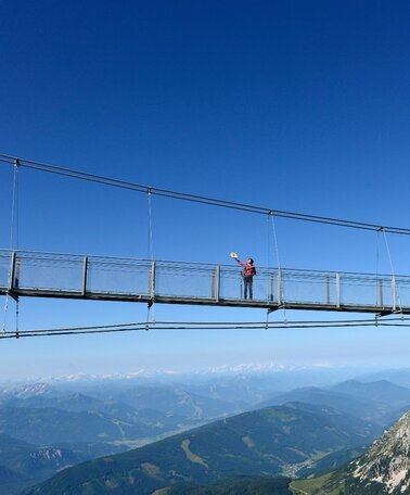 A short ten-minute ride on the Dachstein panorama gondola is all it takes to immerse yourself in a completely new world. A breathtaking panorama stretches as far as the eye can see, accompanied by highlights such as the Dachstein Suspension Bridge with the Stairway to Nothingness, the Sky Walk and the Dachstein Ice Palace.