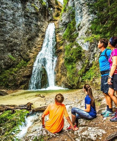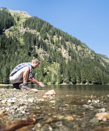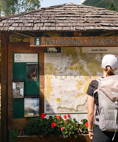 The further you drive into the Kleinsölktal, the more impressive the steep wooded slopes rise to the peaks. At the Schwarzensee, where three sides are surrounded by dark forests, there are some huge, old sycamore trees on the shore and charming reflections appear in the clearings. Here you will find waterfalls that fall like veils over the rock faces and a water show trail.