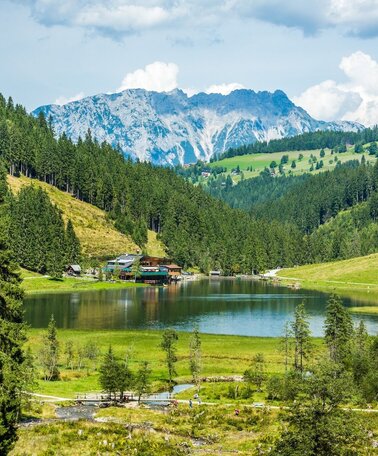 The Spiegelsee on the Reiteralm is one of the most photographed lakes in the Schladming-Dachstein region. This can be reached via a short, narrow hiking trail. On windless days you will be rewarded with a unique panorama, as the Dachstein south walls are reflected on the water of the lake.
