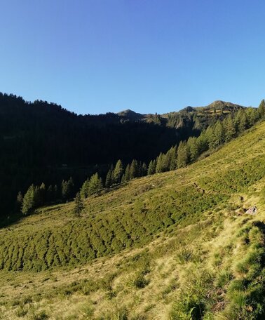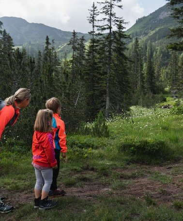 The Breitlahnhütte in the Kleinsölktal is the starting point of this hike, which leads over a wide alpine path almost flat along the Kleinsölk stream to the Schwarzensee.