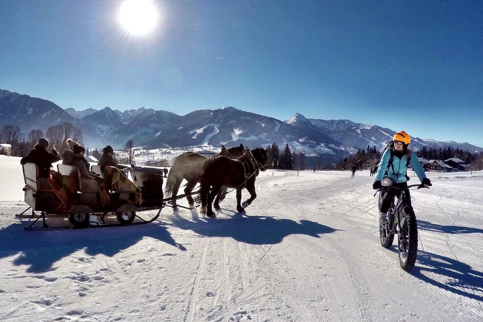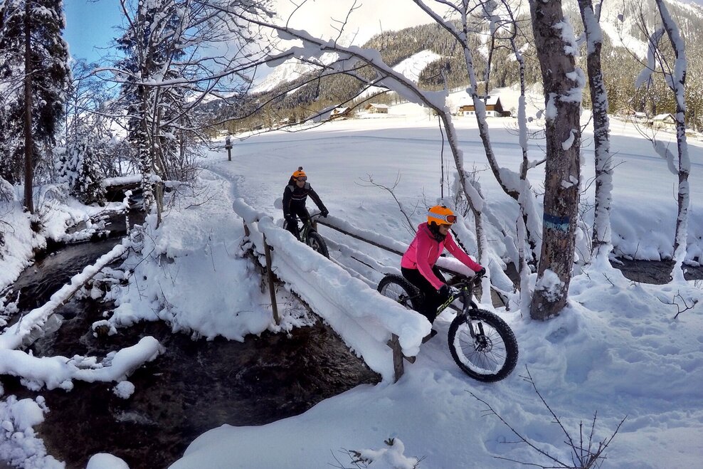 In Schladming-Dachstein, one alternative sport is becoming more and more popular: “Fatbiking“ makes it possible for our active guests to explore the region by bike even in the depths of winter. Fatbikes are equipped with tires up to 12 cm thick, with deep studs that make this particular sporting equipment completely suitable for use in the snow. Guided tours from easy to expert – also at night – are certain to excite mountain bikers during the winter months. We are absolutely certain - whether rookie or crack professional, everybody will have a great time fatbiking.